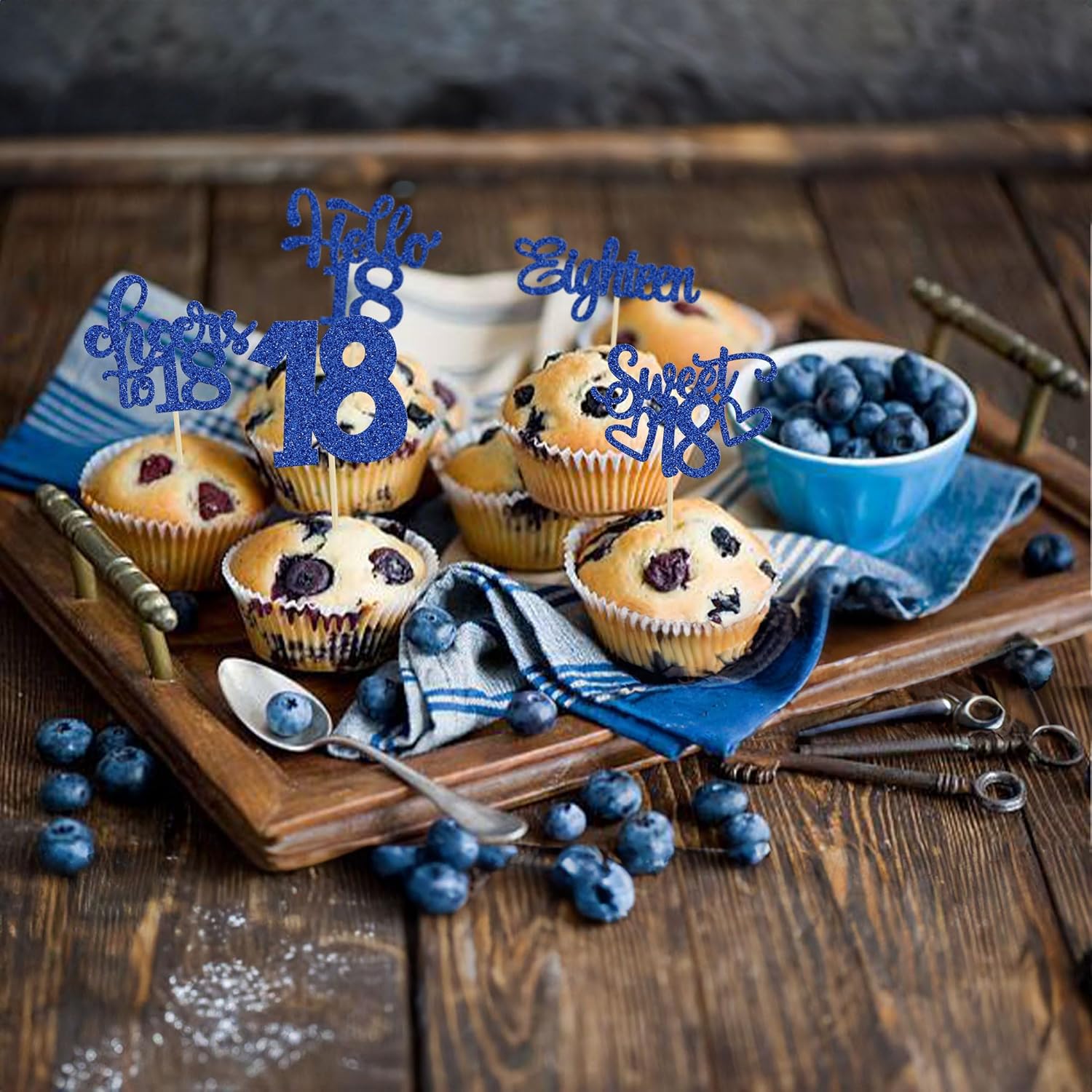 30Pcs18th Birthday Cupcake Toppers Eighteen Happy 18th Cupcake Picks Sweet 18 Cheers to 18 Cake Decorations for 18th Birthday Anniversary Party Supplies Deep Blue Glitter
