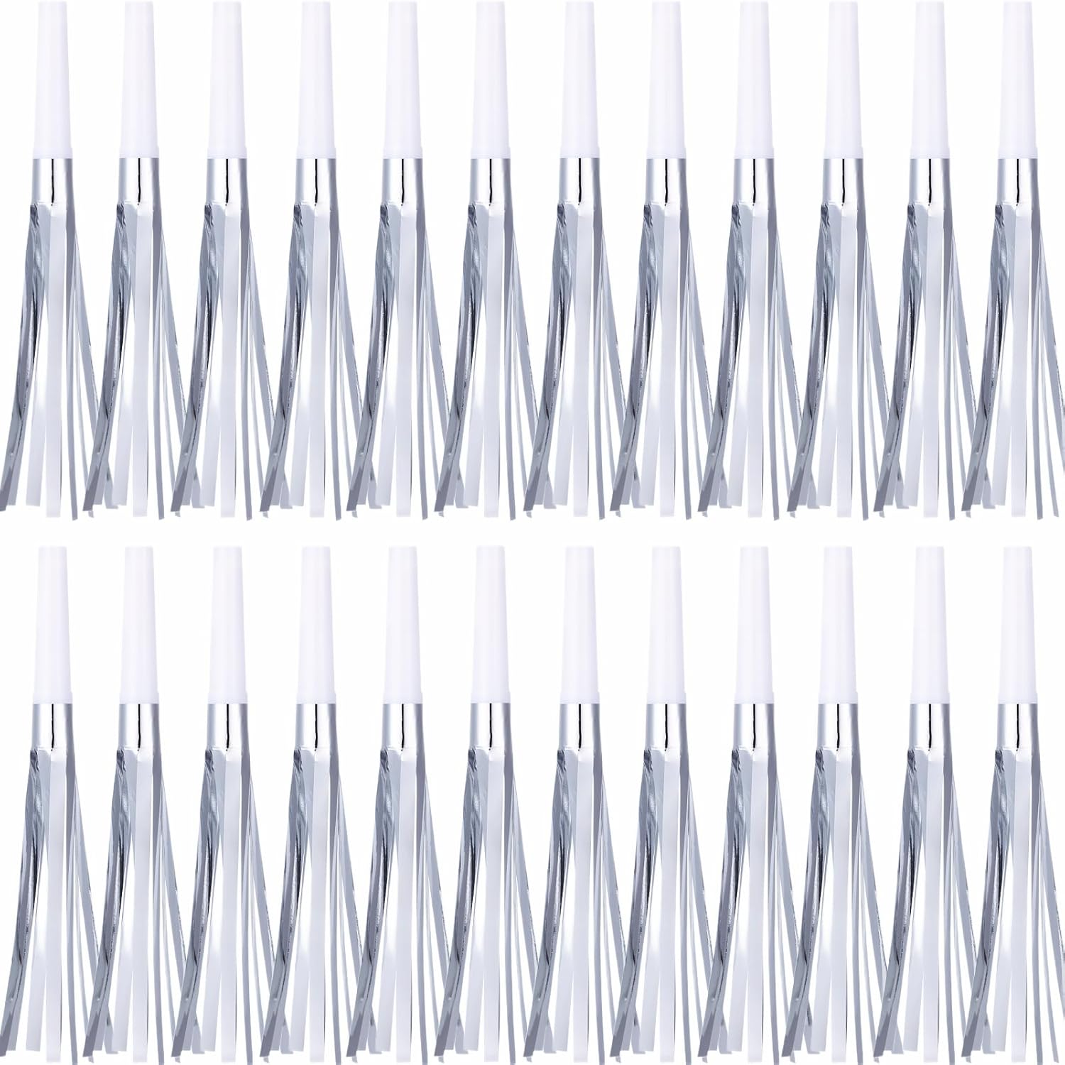 24 Pcs Silver Noise Makers Glitter Metallic Fringed Noise Makers Horns for Baby Shower, Kids Birthday, New Year Party Favor