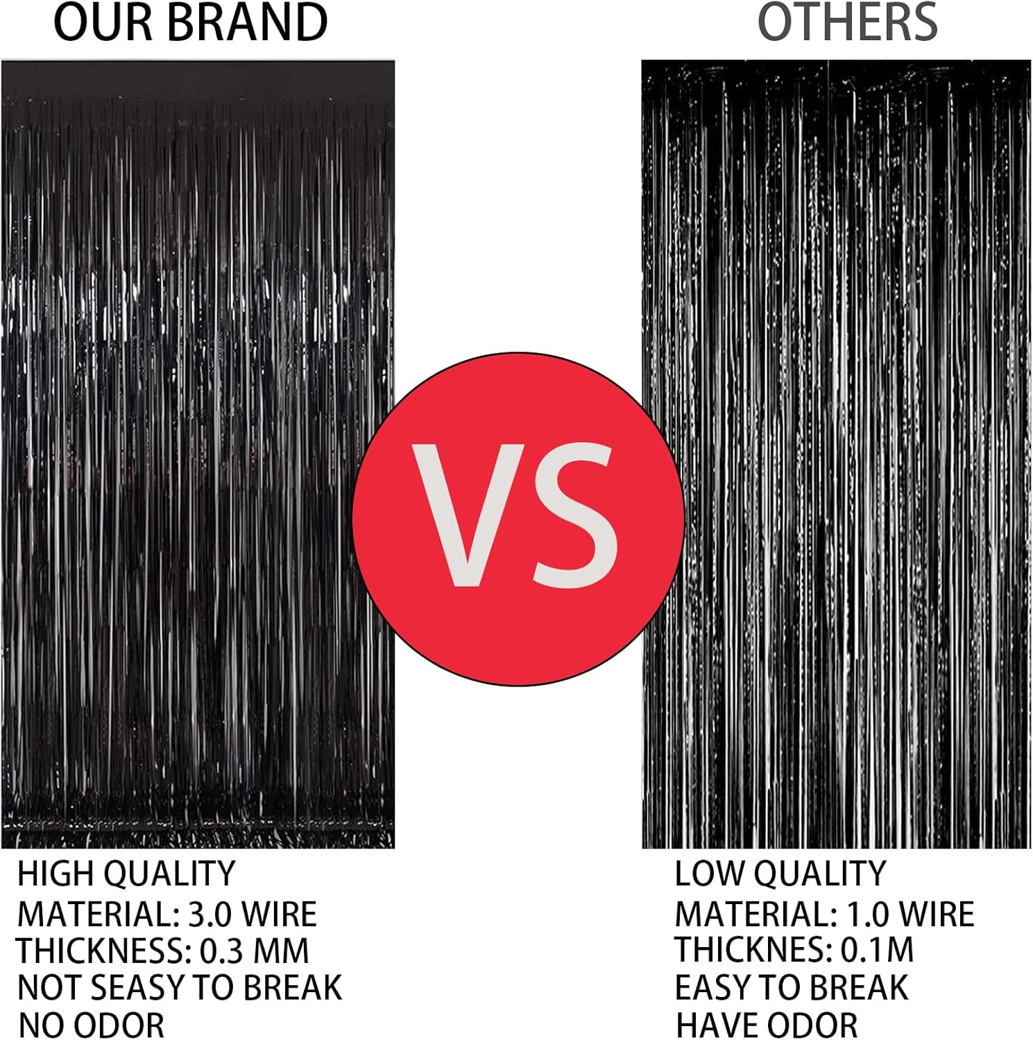 - 2 Pack foil fringe tinsel backdrops: each measuring a whopping 3.3 ft x 8.3 ft.Long enough for indoor or outdoor parties. Also can be cut in suitable length for your birthdays Party decorations These backdrops are perfect for creating stunning party decorations, event backdrops, and photo booths that will leave your guests in awe.