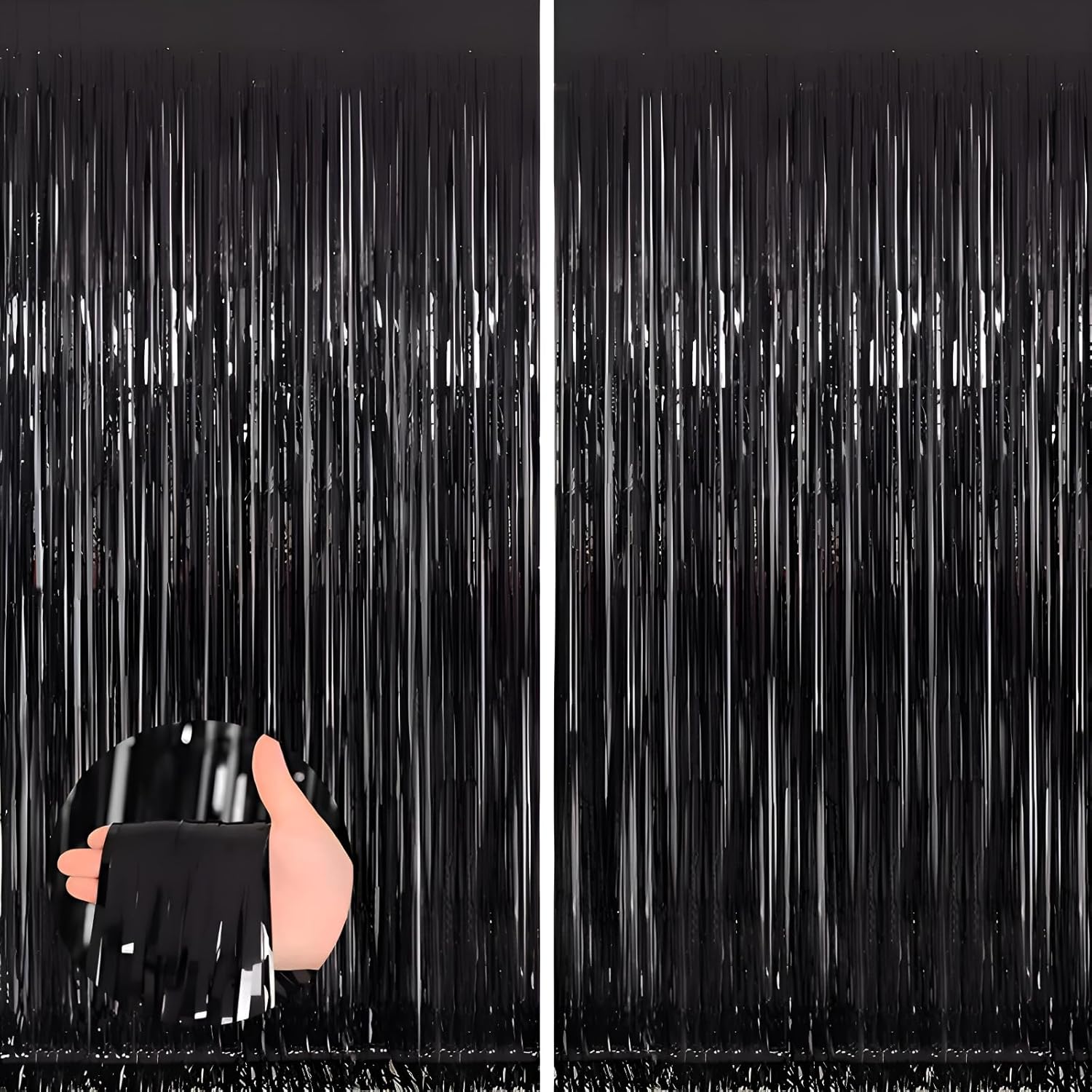 Keyali 2 Pack 3.3 * 8.3 ft Foil Curtain Metallic Tinsel Fringe Curtains Photo Booth Props Backdrop for Birthday Wedding Engagement Baby Shower Christmas Holiday Celebration Partyl,Black