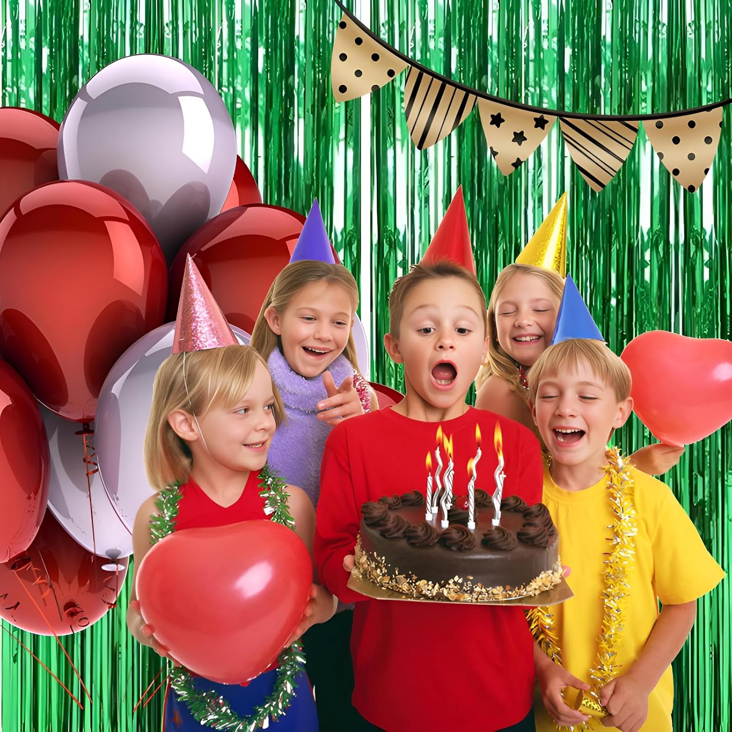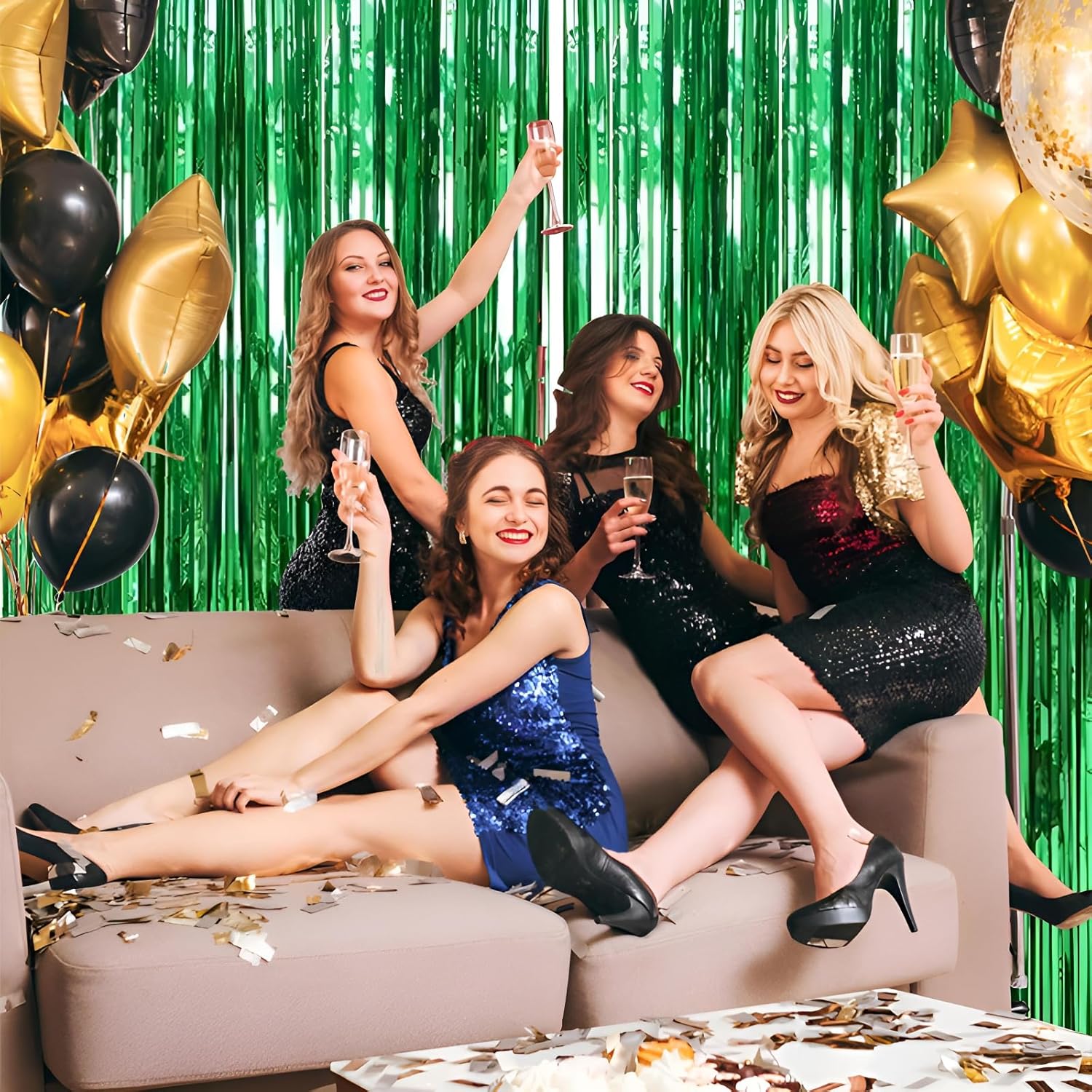 - Pair with other party decorations: Tinsel backdrop curtain can be paired with LED lights, balloons, banners, wreath, garlands, swirl streamer, tissue paper pom poms.