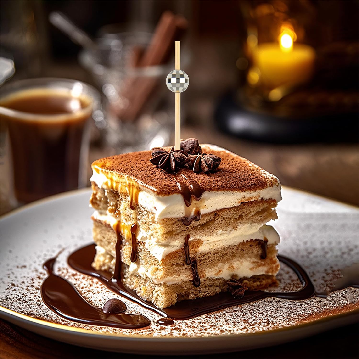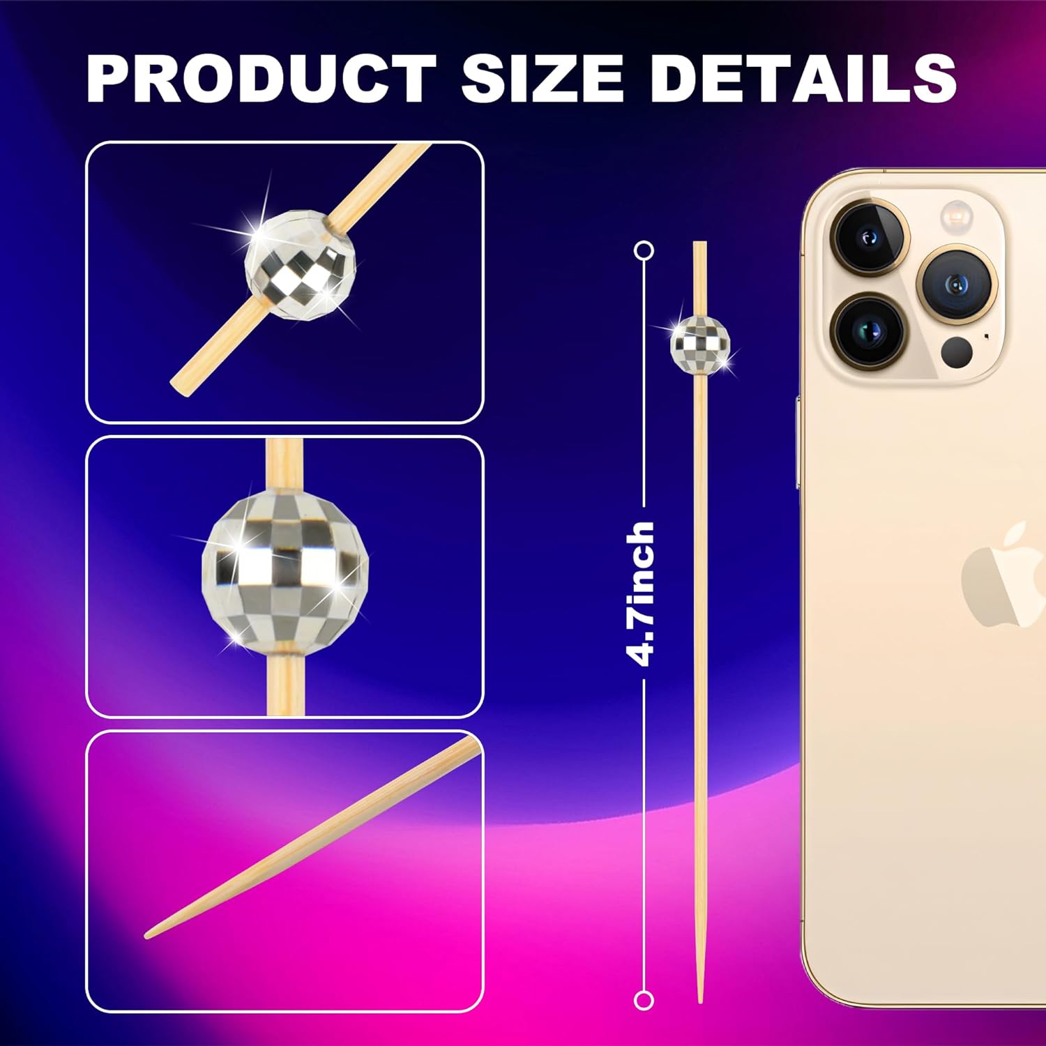 - 【Disco Ball Design】:Cocktail skewers with special disco ball keeps different food pinned together and adds style to your food presentation.It make your home cocktail and appetizer look that much more professional, it's a good helper of decoration.And the natural material of skewer sticks will not affect the flavour of your food.