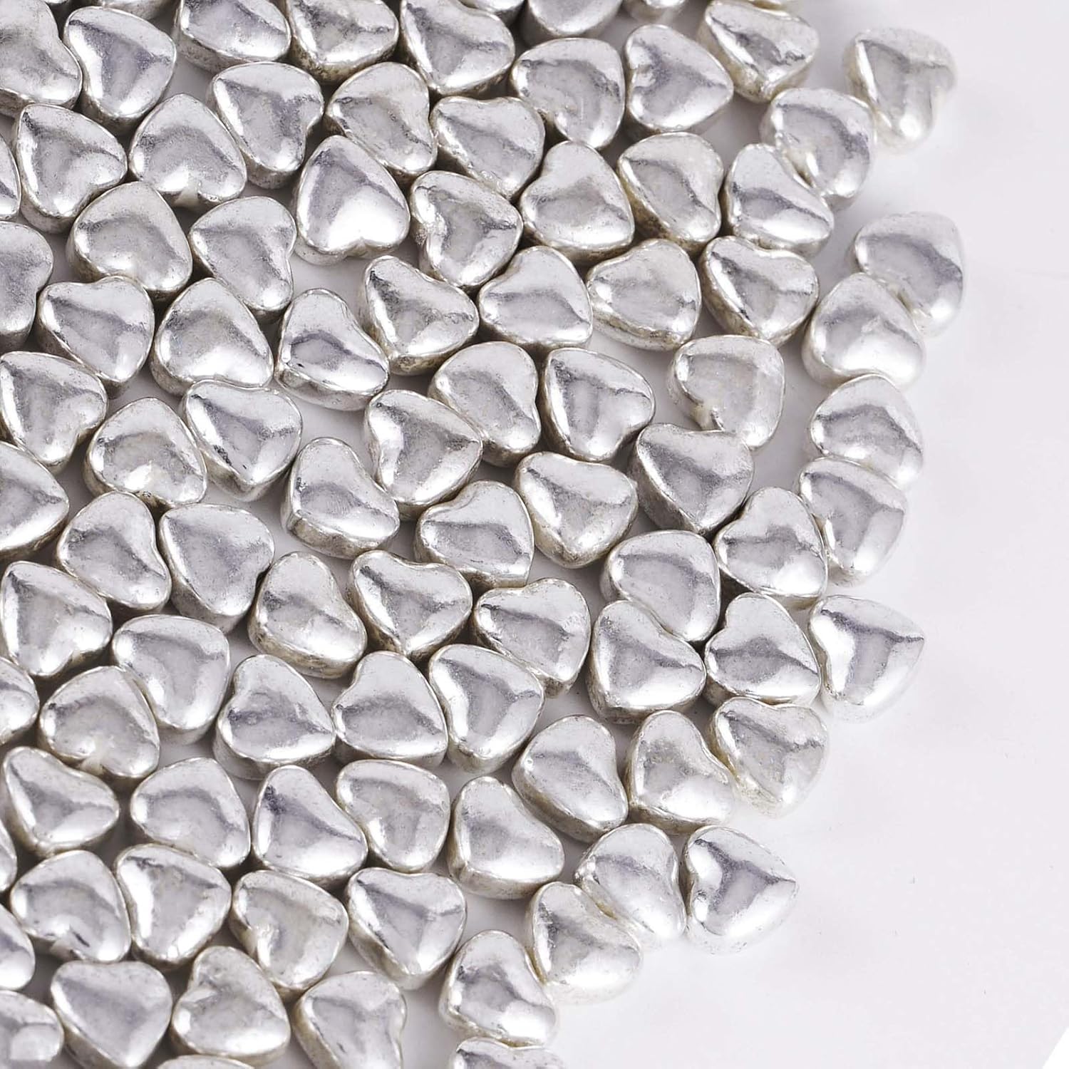 Kasvan Silver Heart Shapes Sprinkles - Edible Candy Pearls 100g/3.58 Oz, Mix Size, Baking Cake Decorations, Ice Cream Toppings and Cookie Decorating, Wedding Party Chirstmas Supplies (Silver)