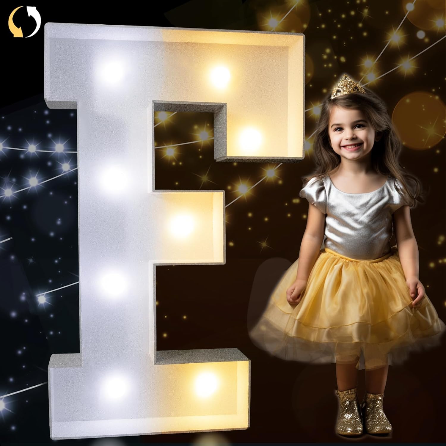 - Giant 3 Feet Marquee Letters with LED Lights: Mosaic letters designed with warm white LED string lights. Giant LED letters can be powered by 3 AA batteries (Not Included) or USB, convenient for all kinds of party decoration.