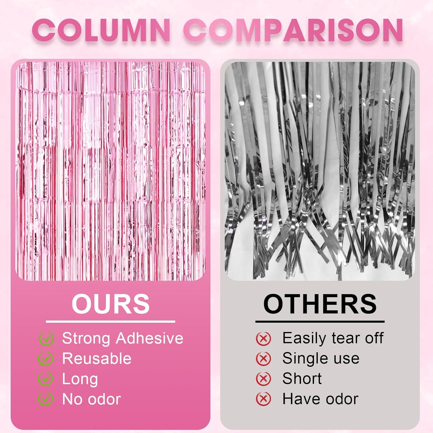 - Premium Material: This Light Pink foil curtain backdrop is made of stable tinsel, non-fading, stay shiny and reusable. Unfold it and then enjoy your glittering party