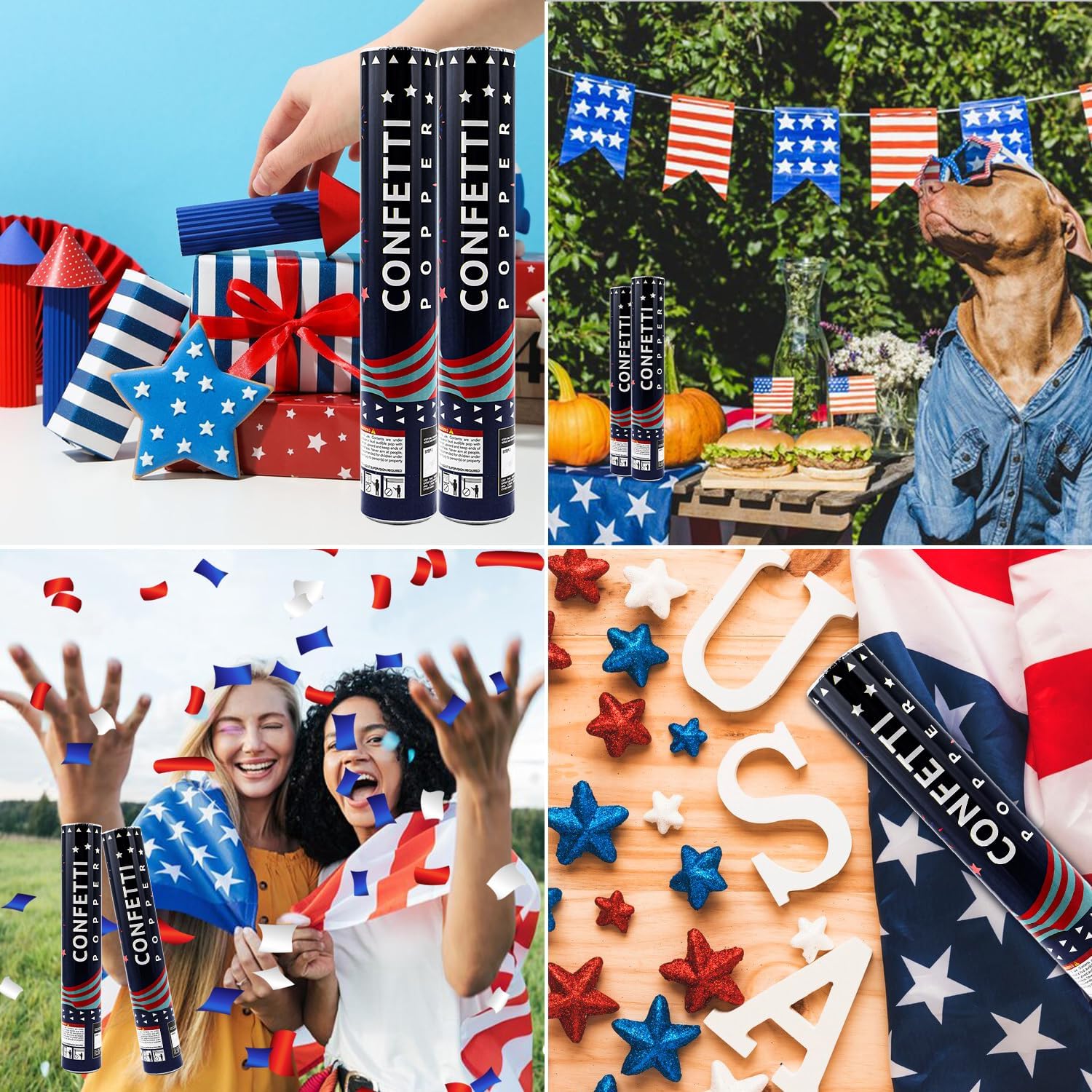 - 【4th of July Patriotic Confetti Cannon】Elevate your 4th of July celebrations with our 12-pack, 12-inch Patriotic Confetti Poppers. Designed to dazzle, each popper unleashes a vibrant shower of red, white, and blue confetti, making every event memorable. Perfect for Independence Day, these confetti poppers ensure your festivities are bursting with patriotic pride. Celebrate in Style with Patriotic Flair.