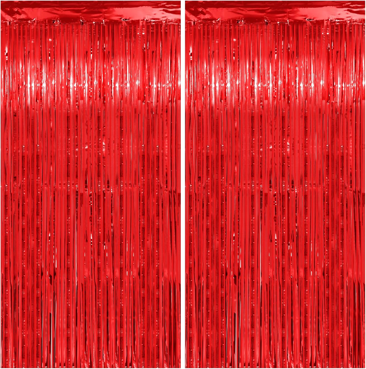 Red Streamers Party Decorations - Thicken 2 Pack 3.2 x 8.2 FT - Tinsel Foil Fringe Curtains Party Backdrop for Birthday, Casino, Carnival, Cherry, Hollywood Red Carpet Party Decorations