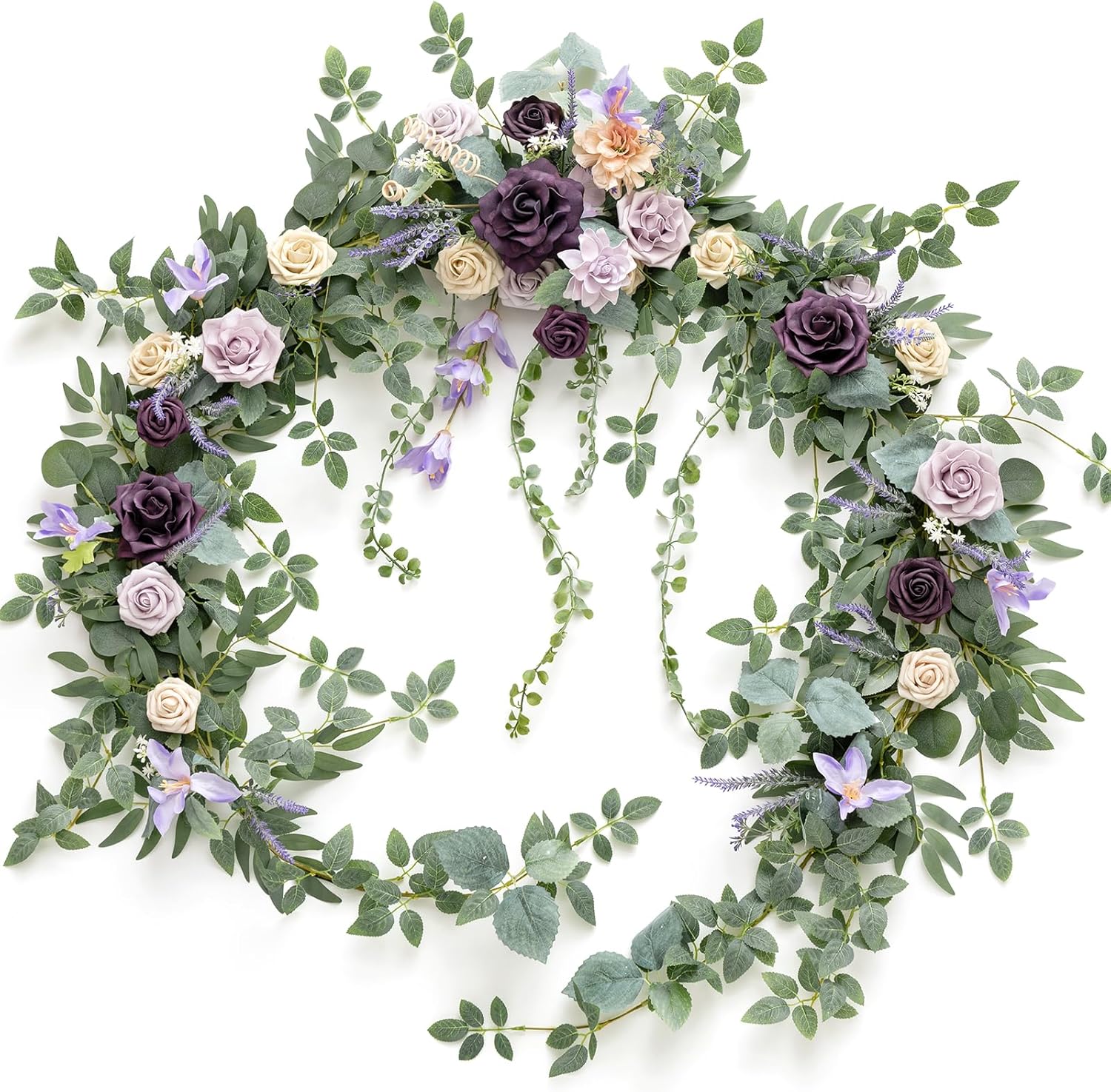 - 9FT Silk Eucalyptus and Willow Flower Garland : The realistic and natural flowers perfectly blend with eucalyptus leaves, help to create your romantic spring/summer lilac theme wedding.