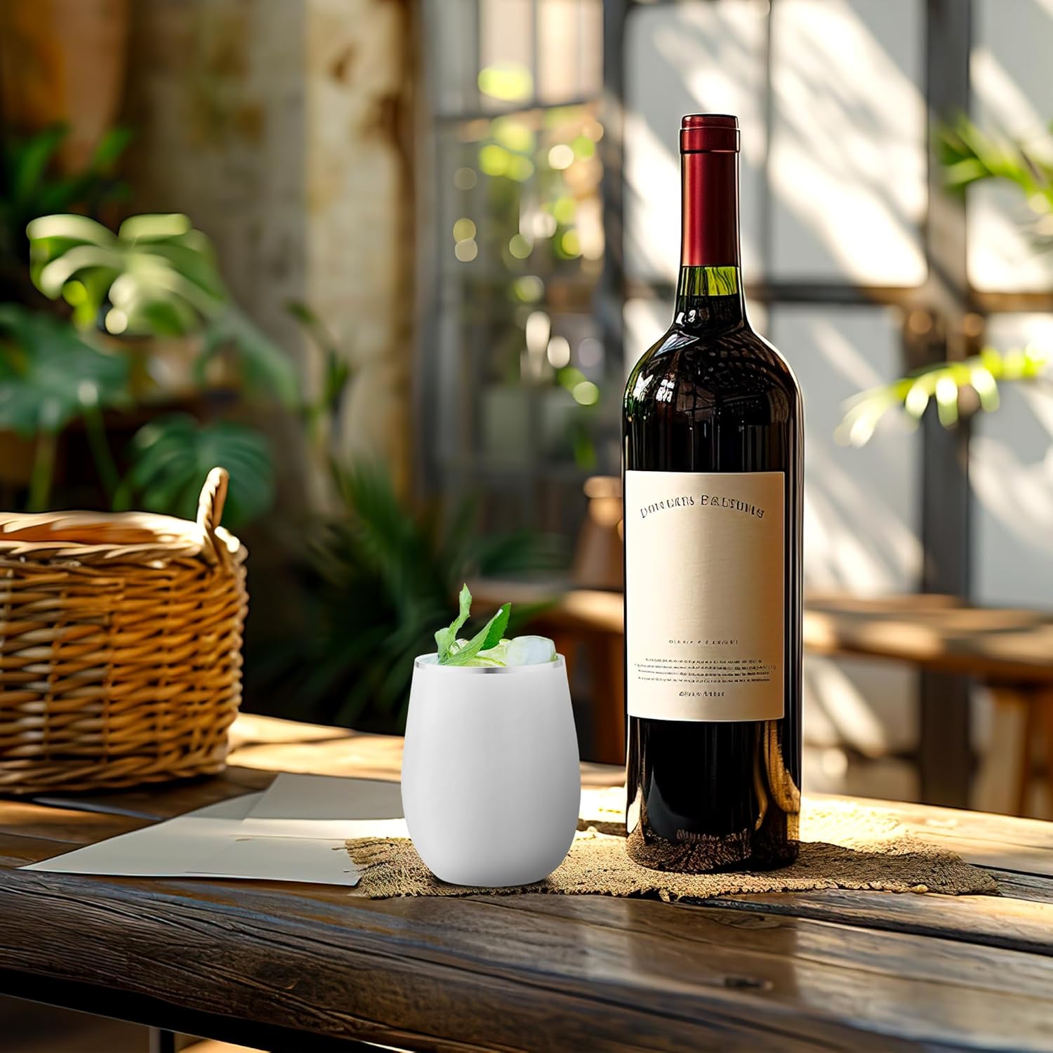 Smarty Had A Party 64 White with Silver Elegant Stemless Plastic Wine Glasses, 12 oz Disposable Drinkware, Plastic Wine Glasses for Parties