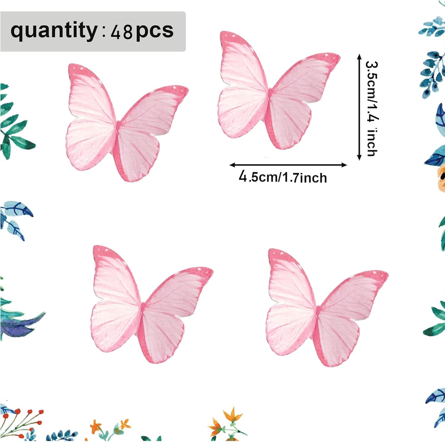 48Pcs Edible Butterflies for Cake Decorations Pink Wafer Paper Butterfly Cupcake Toppers Wafer Glutinous Paper Butterflies for Wedding Baby Shower Kids Birthday Party Cupcakes Decorating (Pink)