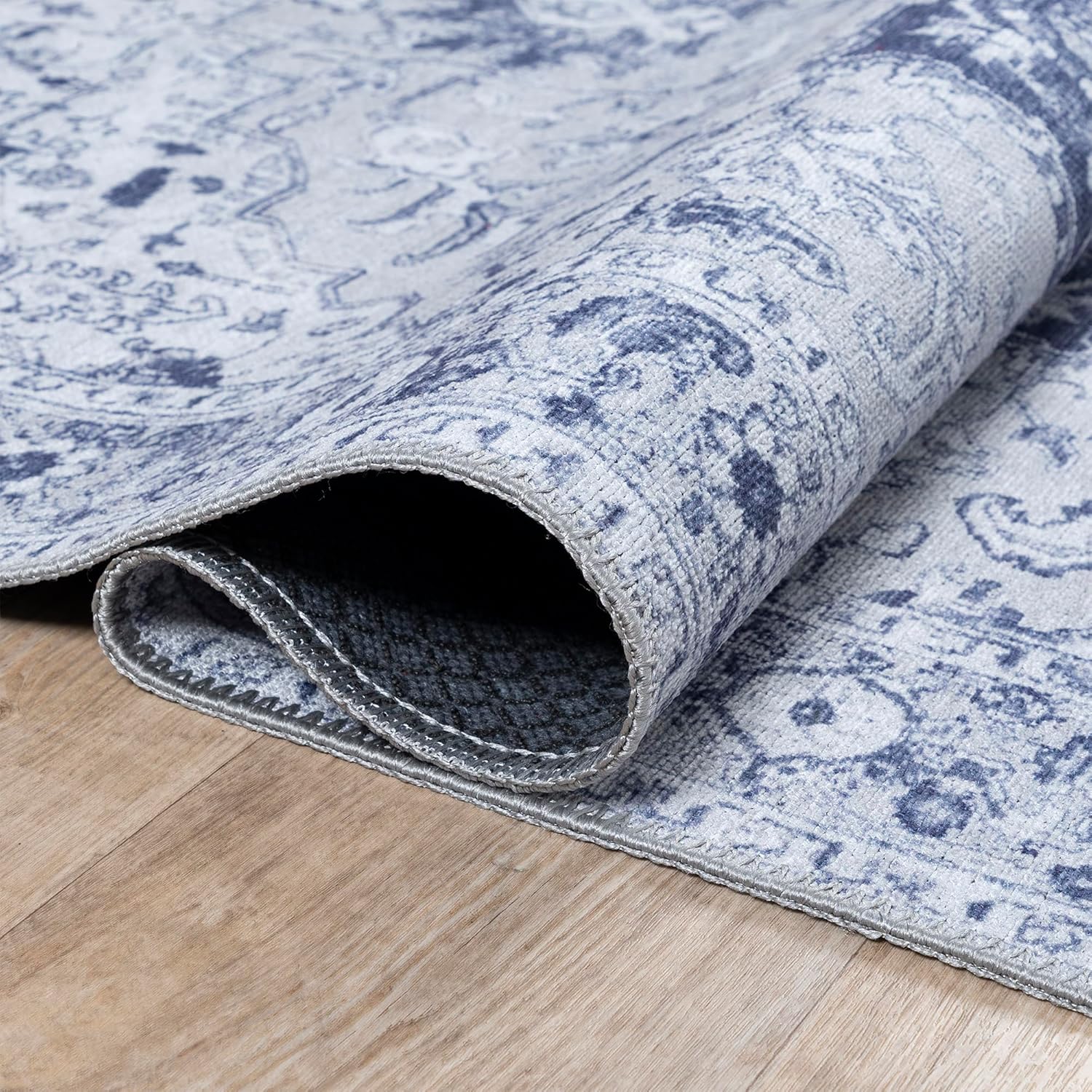 Bloom Rugs Washable Non-Slip 4' x 6' Rug - Gray/Blue Traditional Medallion Area Rug for Living Room, Bedroom, Dining Room, and Kitchen - Exact Size: 4' x 6'