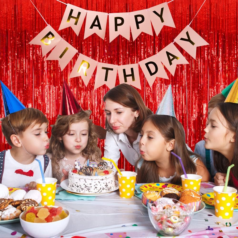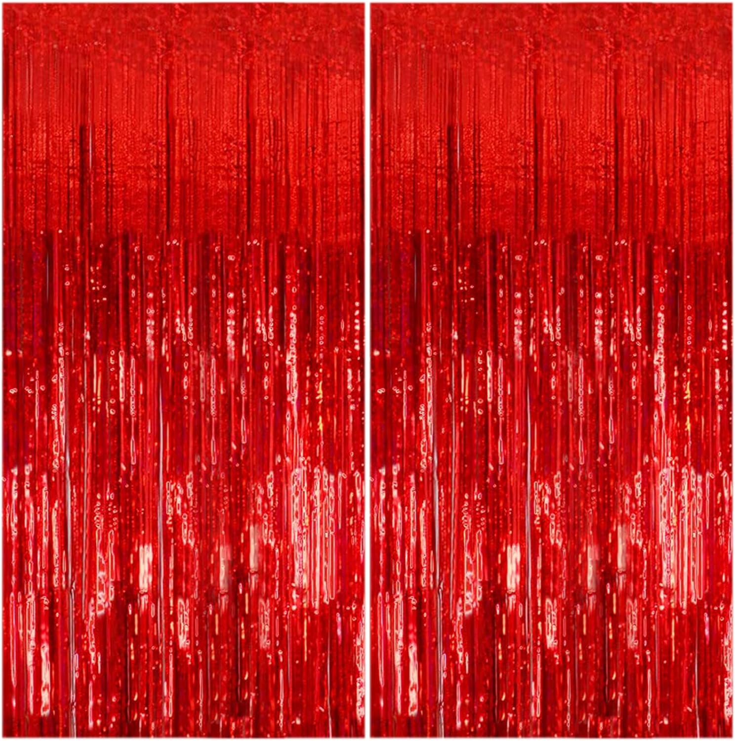 2 Pack Foil Curtain Backdrop Red Metallic Tinsel Foil Fringe Curtains Photo Booth Props for Birthday Wedding Engagement Baby Shower Bachelorette Christmas Holiday Celebration Party Decorations