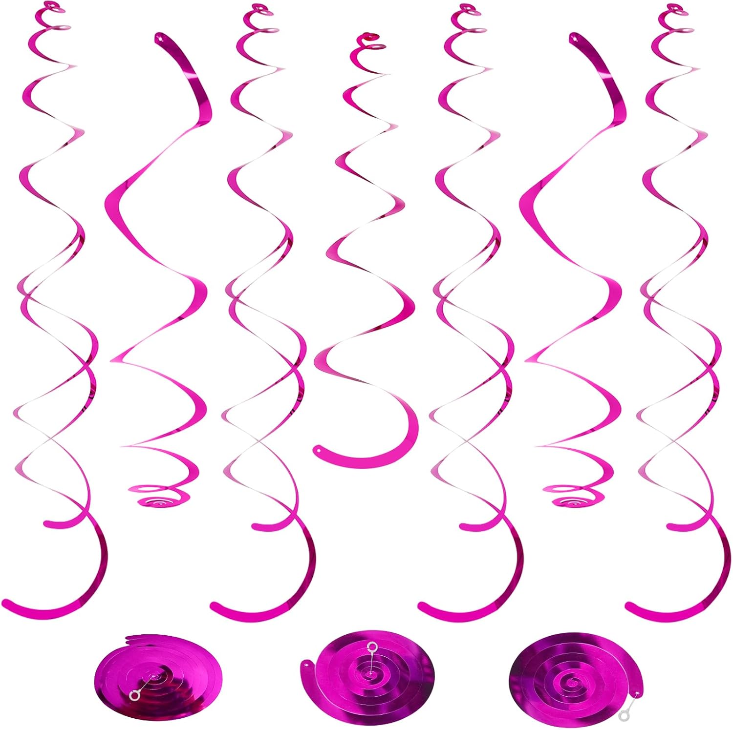 24 PCS Hot Pink Hanging Swirl, Fuschia Sparkle Ceiling Hanging Decorations, Plastic Streamer Party Decorations with Double-Swirls and Single-Swirls for Birthday Decorations, Summer, Hawaiian