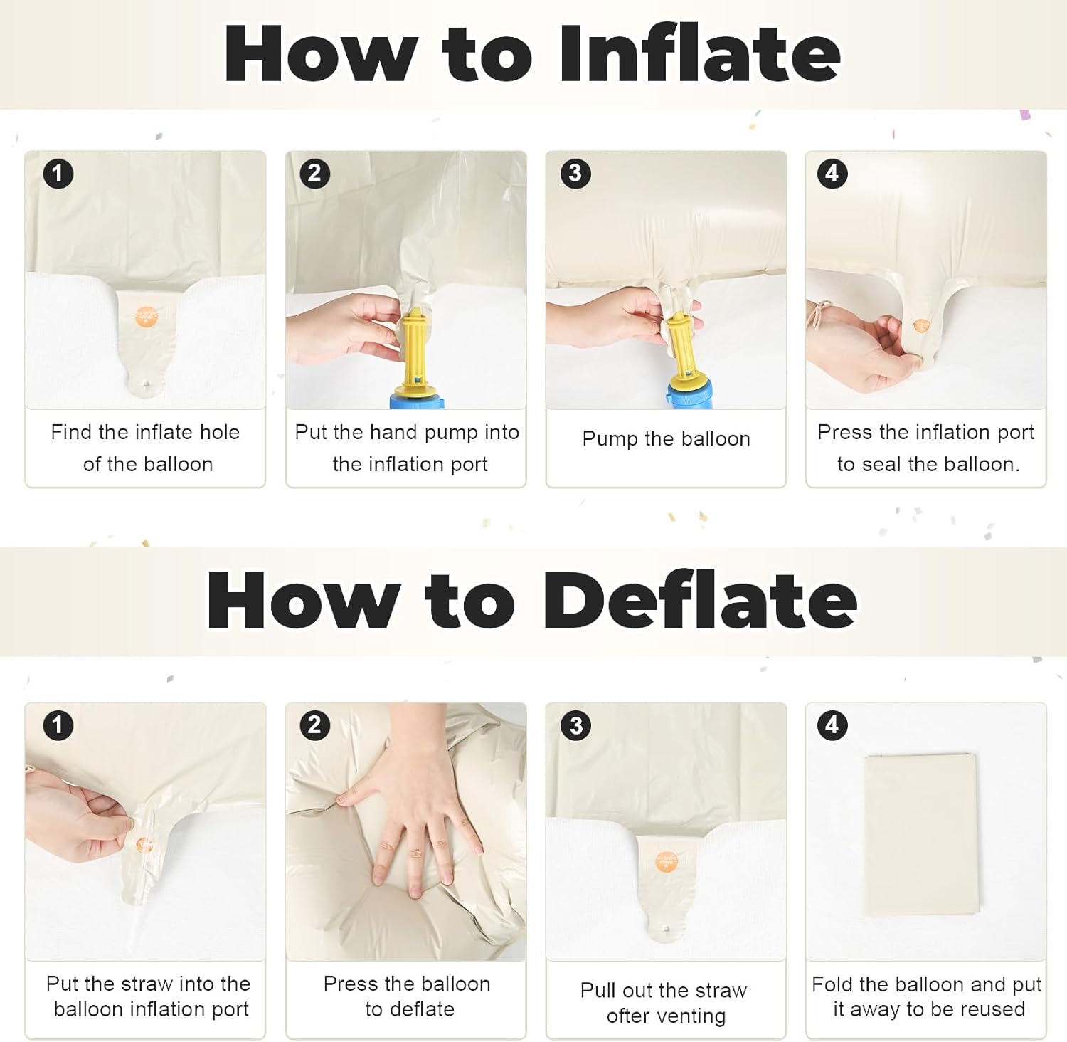 - π High Quality Material: Our cream alphabet balloons are made from grade mylar material, safe, non-Toxic, high quality, durability, long-lasting, self-inflating and reusable. It can be filled with air or helium, and 90% filling is enough to hold it for a long time. After the inflation is completed, just pinch the inflation port to complete the inflation.