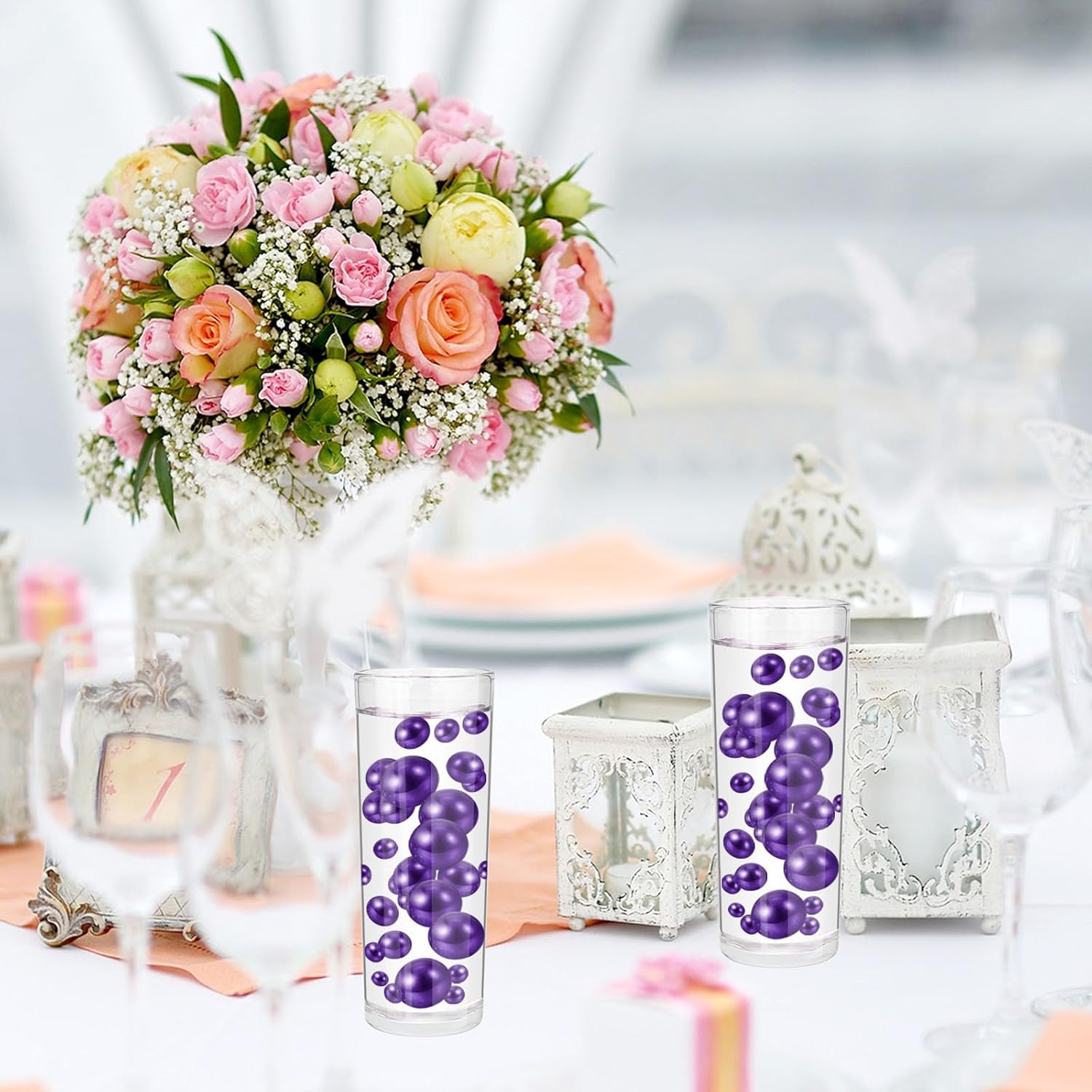 100PCS Purple Faux Pearls Beads for Centerpiece Vases, Vase Filler Faux Pearls, No Holes Filler Beads for Party Anniversary Birthday Wedding Table Decor, 14/20/30mm