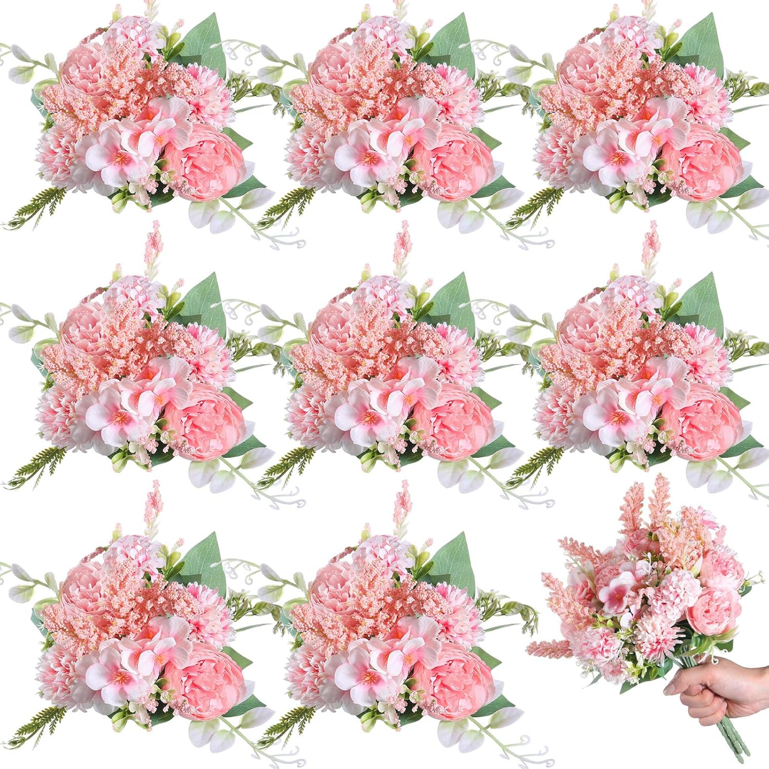 Zeyune 8 Pcs Wedding Silk Flowers Fake Silk Flowers Faux Bouquet Hydrangea Bouquets for Wedding Birthday Party Table Centerpieces Home Decoration(Pink,Peony)