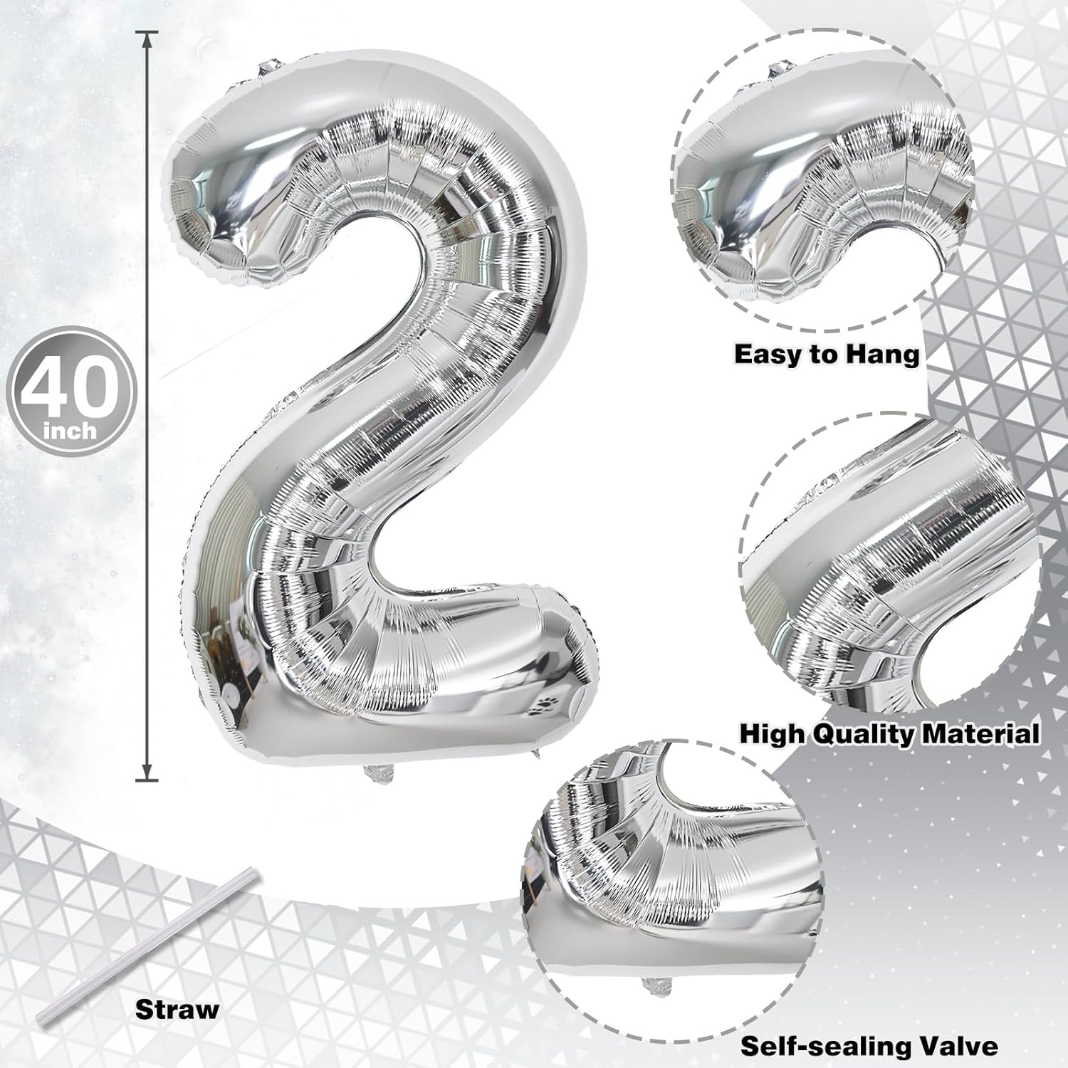 - π Silver Number 21 Balloon: Our package included 40 inch number 2 & 1 balloon and 1pcs straw. Simply inflate the balloon using the straw, and you're ready to party! Silver number foil balloons are the best for women men birthday party decoration.