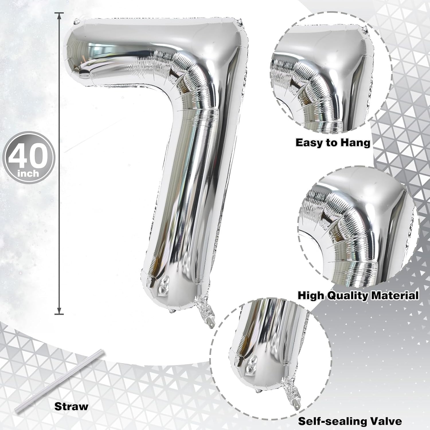 - π Silver Number 17 Balloon: Our package included 40 inch number 1 & 7 balloon and 1pcs straw. Simply inflate the balloon using the straw, and you're ready to party! Silver number foil balloons are the best for girls or boys birthday party decoration.