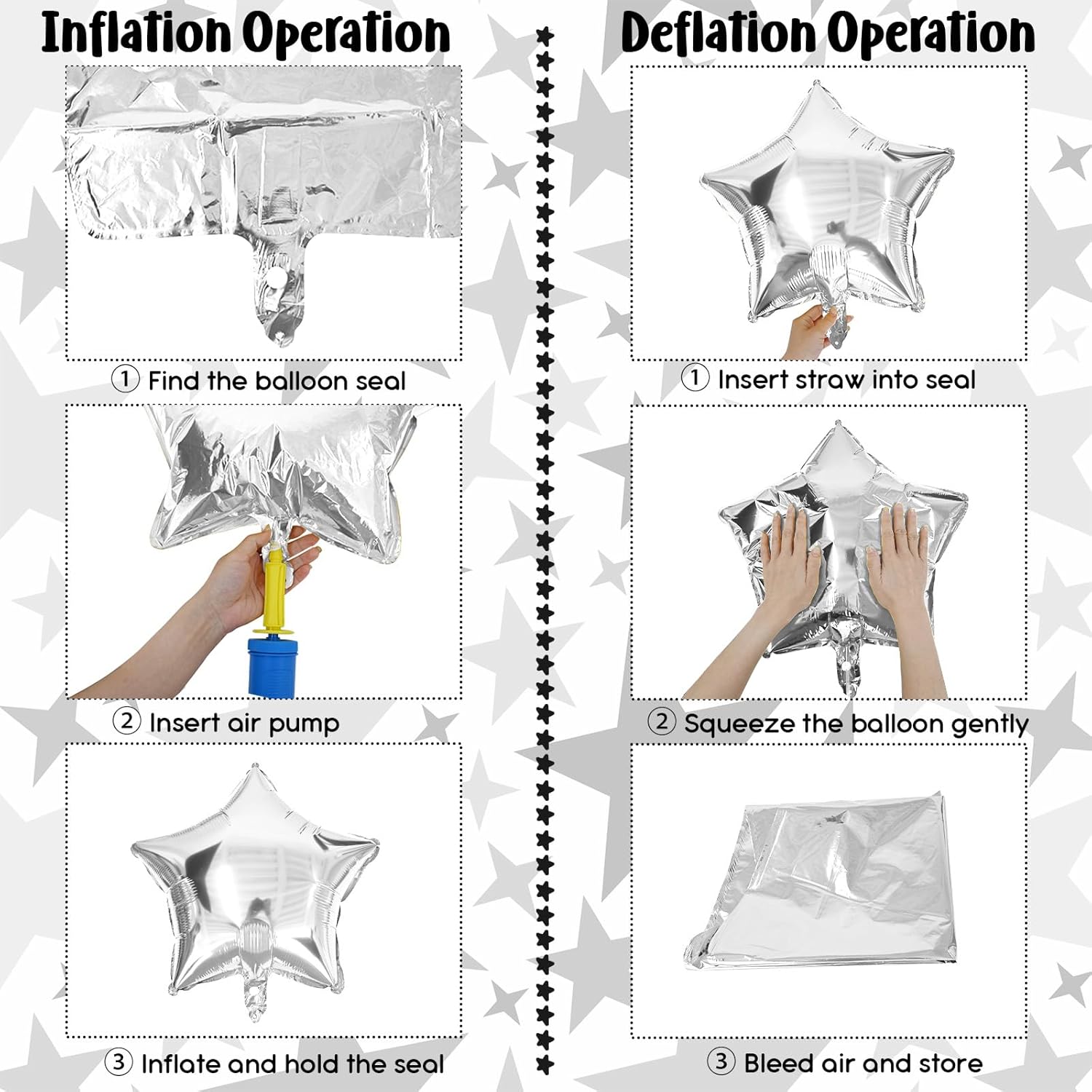 - Premium Quality Stars Foil Balloon: Our shiny balloons are crafted with a durable aluminum foil material, ensuring durability and resistance to deformation, without leaking or losing air, strong and auto-seal.
