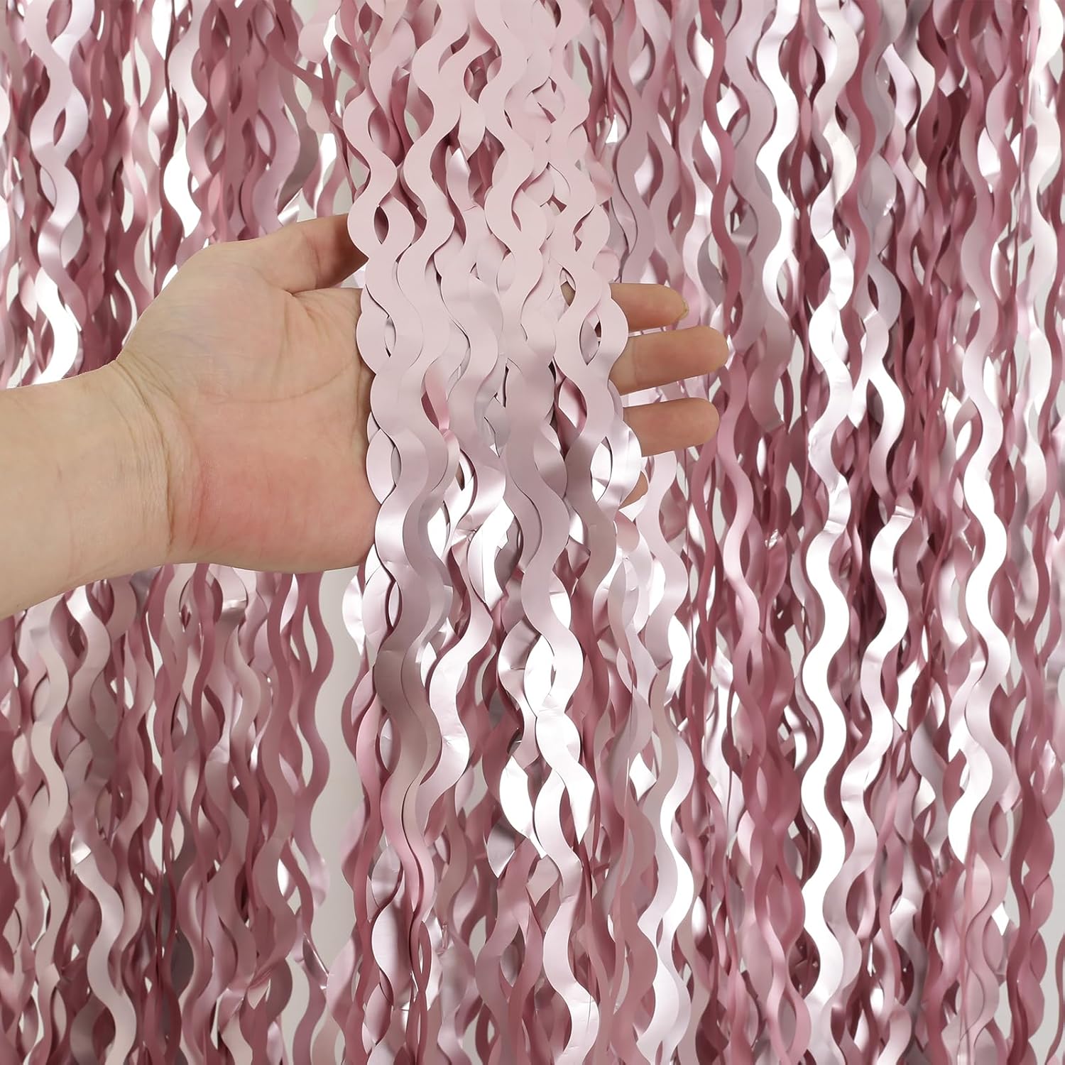 - Wavy Shape and Quality Material: The metallic tinsel backdrop is made of aluminum foil with wavy shape,You can overlap or side by side the light pink fringe backdrop make it more fuller and better look