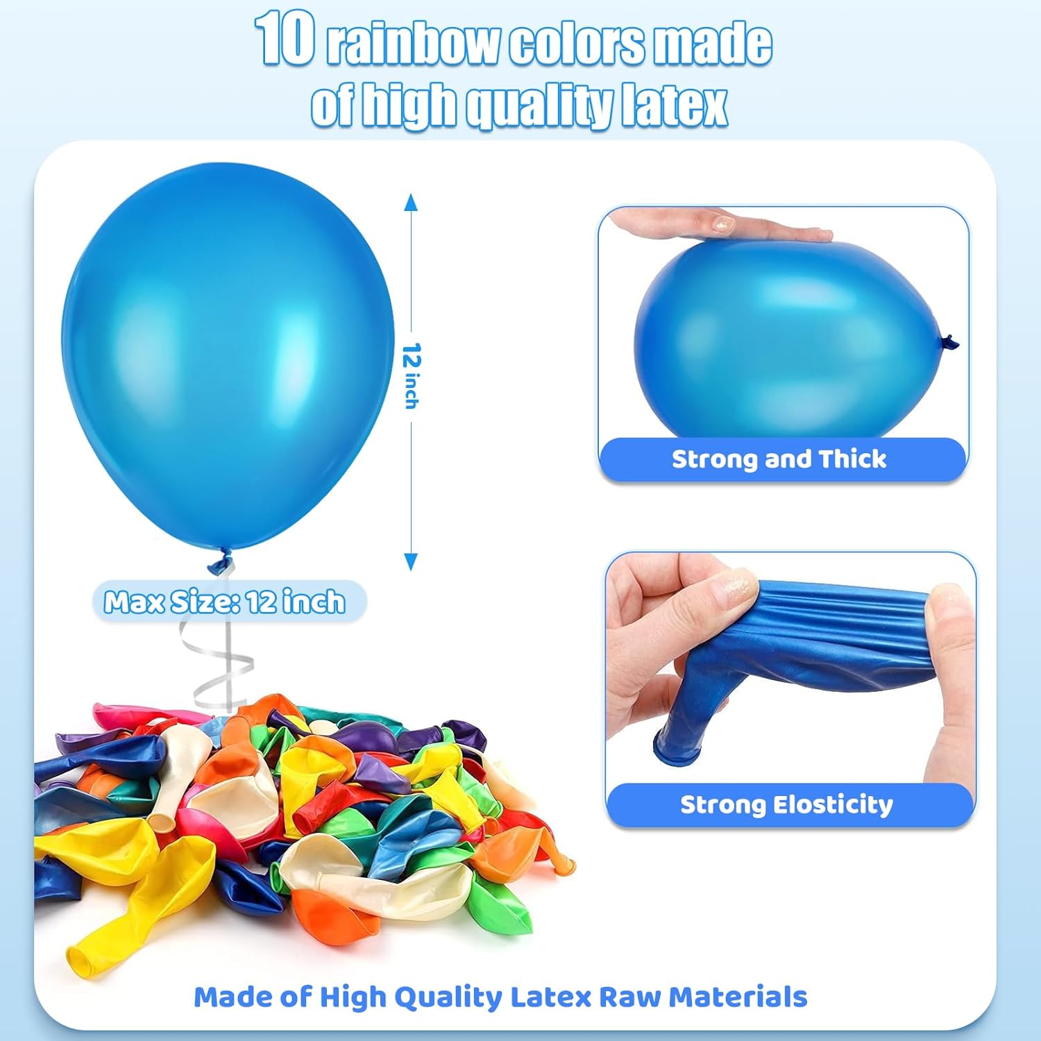 120 Pack Balloons Assorted Color 12 Inches Rainbow Latex Balloons, 10 Bright Color Balloon Arch Kit, for Birthday Baby Shower Wedding Party Decorations