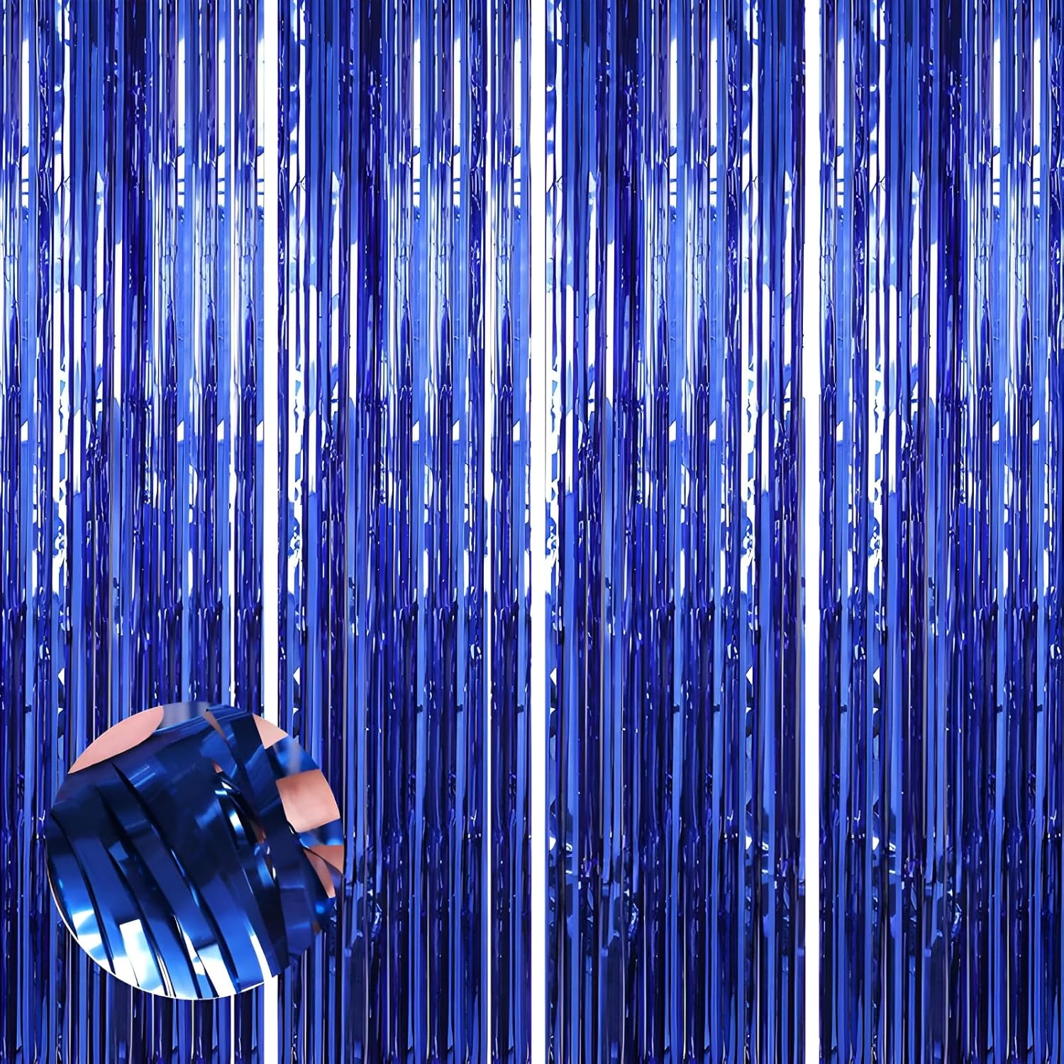 4 Pack 3.3 * 8.3 ft Foil Curtain Metallic Tinsel Fringe Curtains Photo Booth Props Backdrop for Birthday Wedding Engagement Baby Shower Christmas Holiday Celebration Party,Blue
