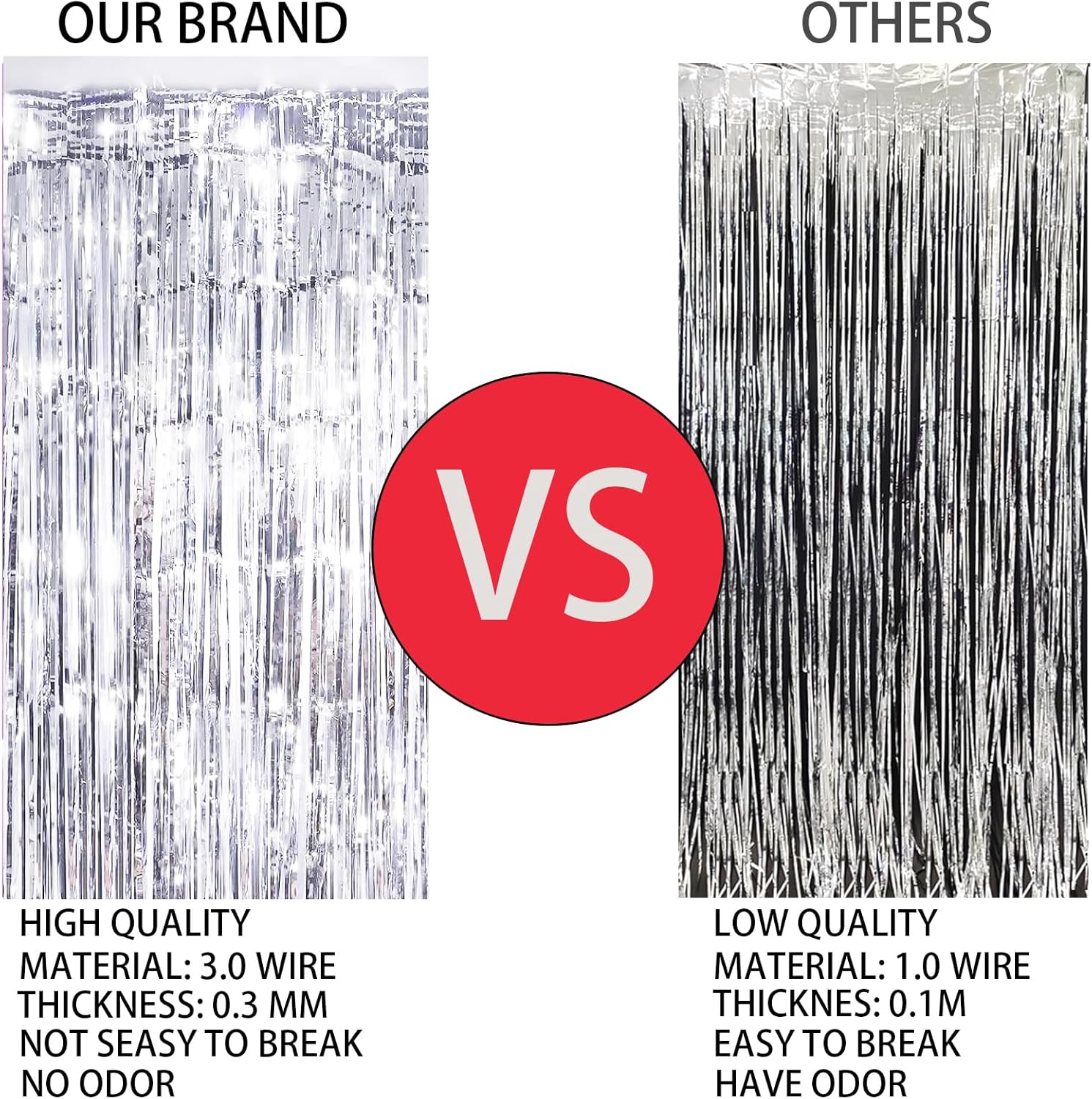 - Reflective effect:Foil fringe curtains have a thickness of 0.4mm, making them thicker and less likely to wrinkle or crease, resulting in a durable and long-lasting decoration. Additionally, Keyali Foil fringe streamers are made of sturdy and flexible PET material, making them resistant to breaking or tearing.Metallic streamers come in a range of beautiful colours with a shiny, iridescent, and reflective surface that creates an eye-catching and mesmerising effect!