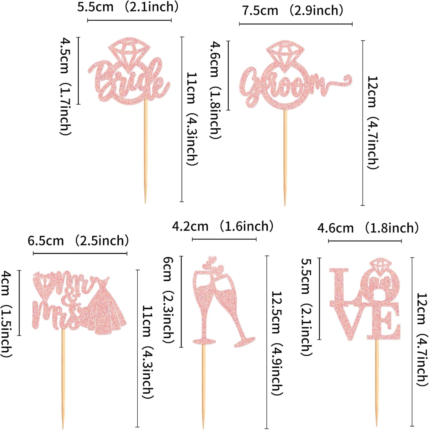 - š°ćUnique designćļ¼Sparkling adorable bride and groom cupcake toppers makes your cupcakes become the focus of bridal shower or wedding party. All cupcake toppers are pre-assembled, it can save much time for you.