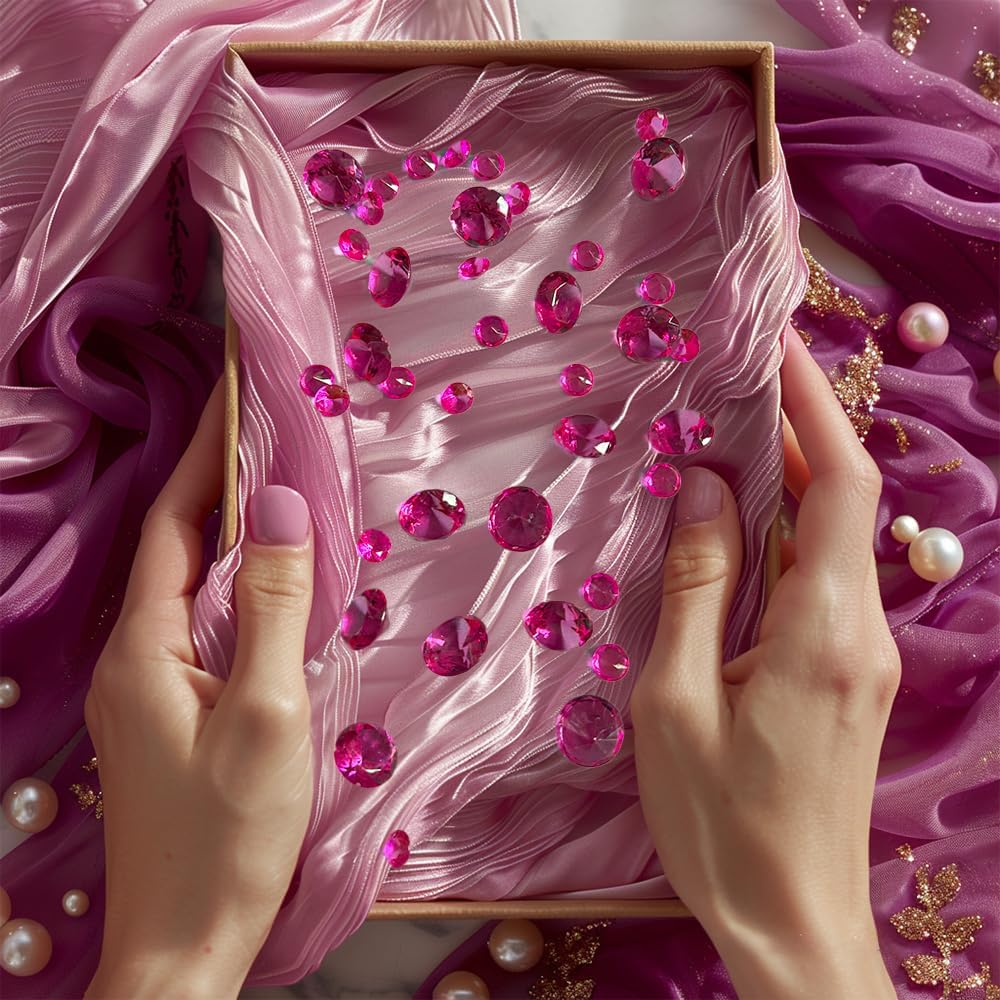 HappyFiller 720 Pcs Fuchsia Acrylic Diamonds Gems for Wedding Decorations Table Scatters,Vase Fillers, Treasure Gemstones,Bridal Shower,Floral Home Centerpieces,Party Favor,14 OZ,0.8/0.4 Inch Mix