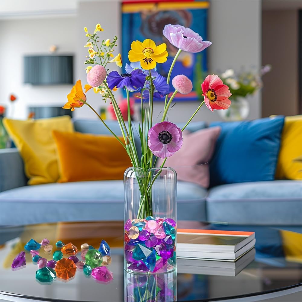 HappyFiller 130 PCS Acrylic Diamonds Fake Crystal Gems 2 Size Mixed for Swimming Pool Pirate Treasure Box Hunt Jewels,also Wedding Party Decor Table Scatters,Colored Vase Fillers