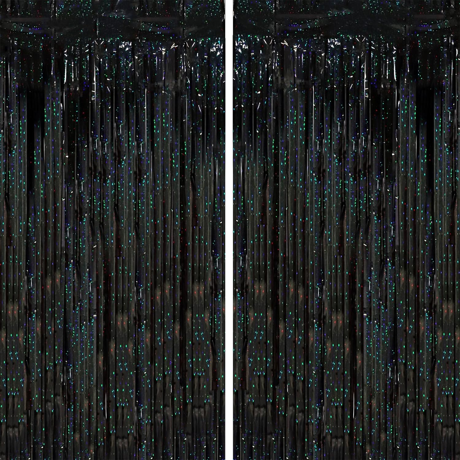 - Stunning Decorative Set: You'll receive 2 pcs laser black foil fringe backdrop curtains, each measuring 3.28 ft (wide)Γ6.56 ft (drop). Enough length foil fringe curtains backdrops are perfect for the door or wall to create an impressive decoration