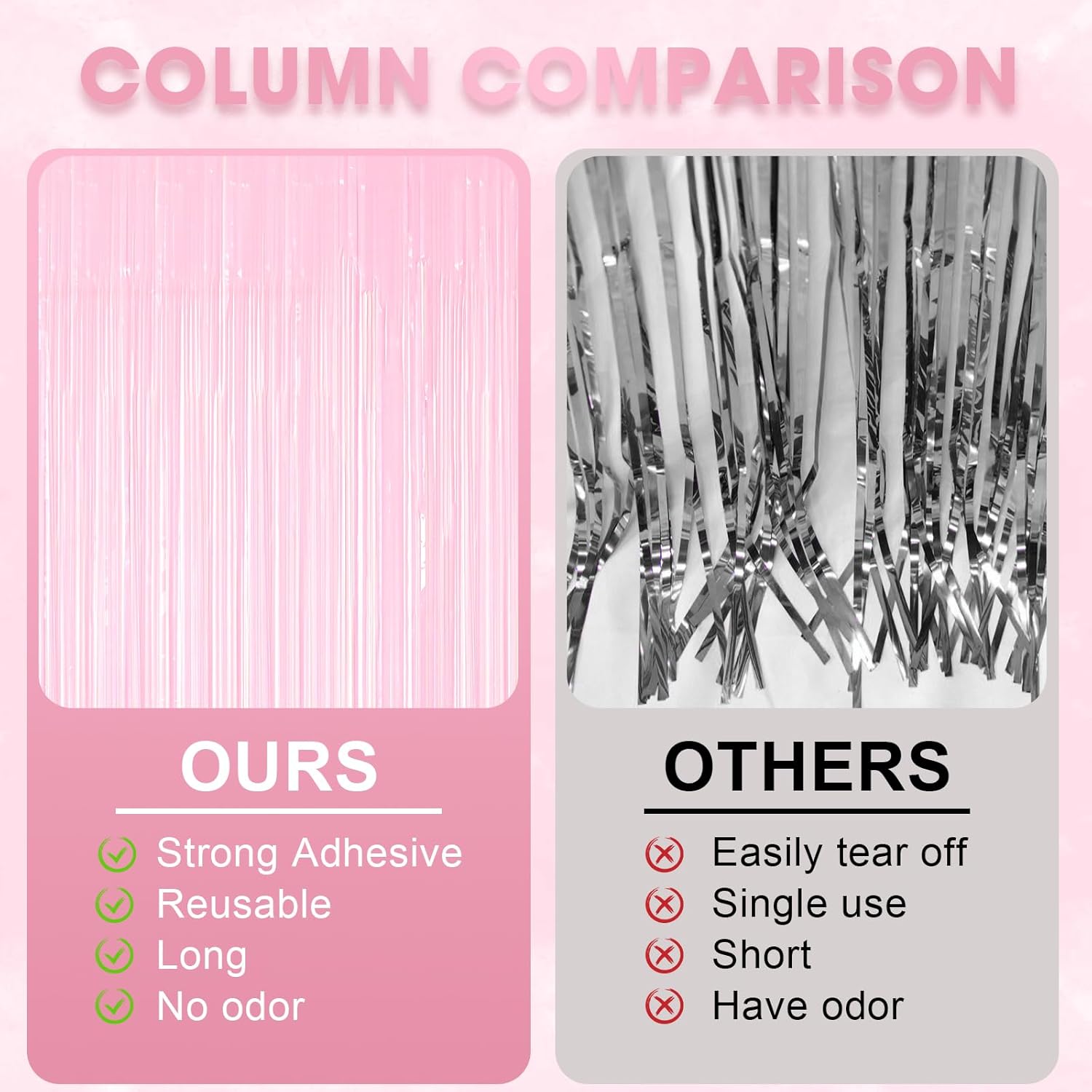 - Eye-Catching Design: These pink foil fringe tinsel backdrops boast vibrant colors and a shimmering effect that reflects light beautifully. Your friends will be mesmerized by the captivating atmosphere these curtains create