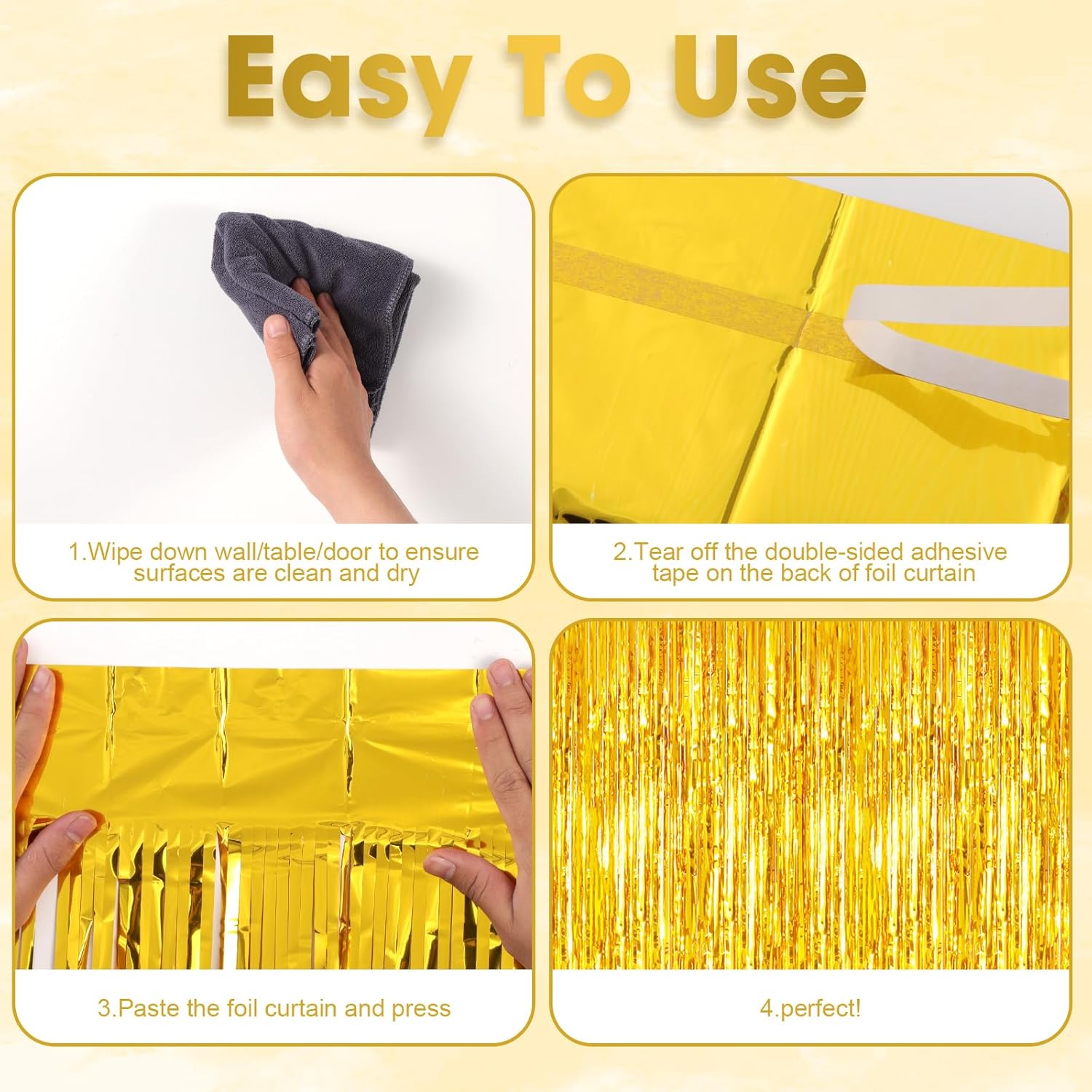 - Premium Quality: Crafted from shiny PET tinsel, these gold fringe curtains are designed to be light weight, easy to hang, and resistant to wear and tear. The metallic party streamers reflect light beautifully, creating a mesmerizing visual effect