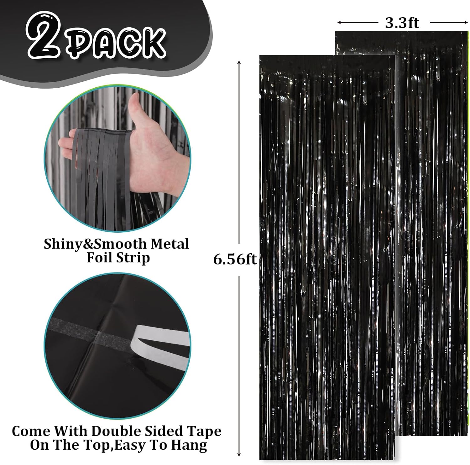 - Stunning Decorative Set: You'll receive 2 pcs black foil fringe backdrop curtains, each measuring 3.28 ft (wide)Γ6.56 ft (drop). Enough length foil fringe curtains backdrops are perfect for the door or wall to create an impressive decoration