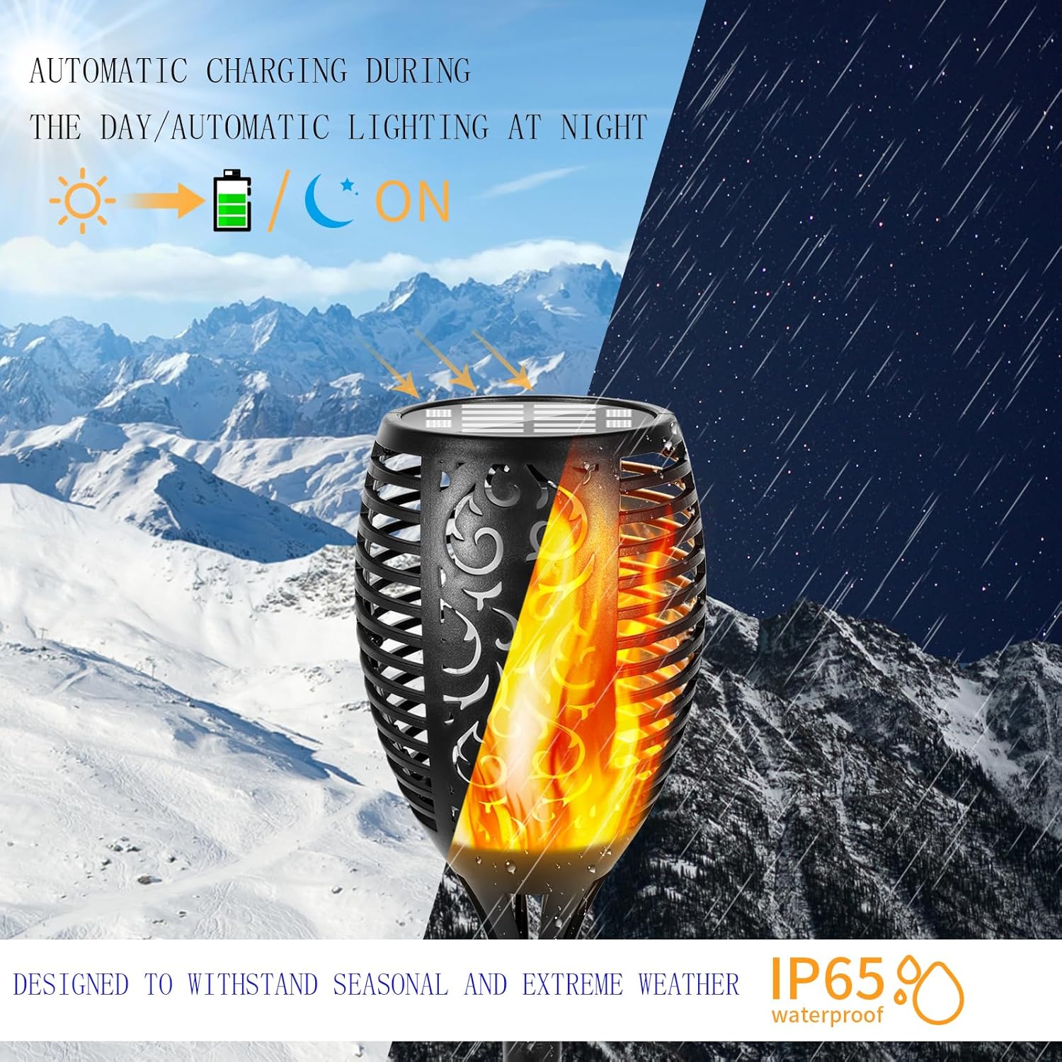 I-SHUNFA 96 LED Outdoor Waterproof Solar Torch Lights with 3 Modes—Flickering Flame, Fade Effect, or Full Brightness! Automatic On/Off Landscape Decorations and Security Lights