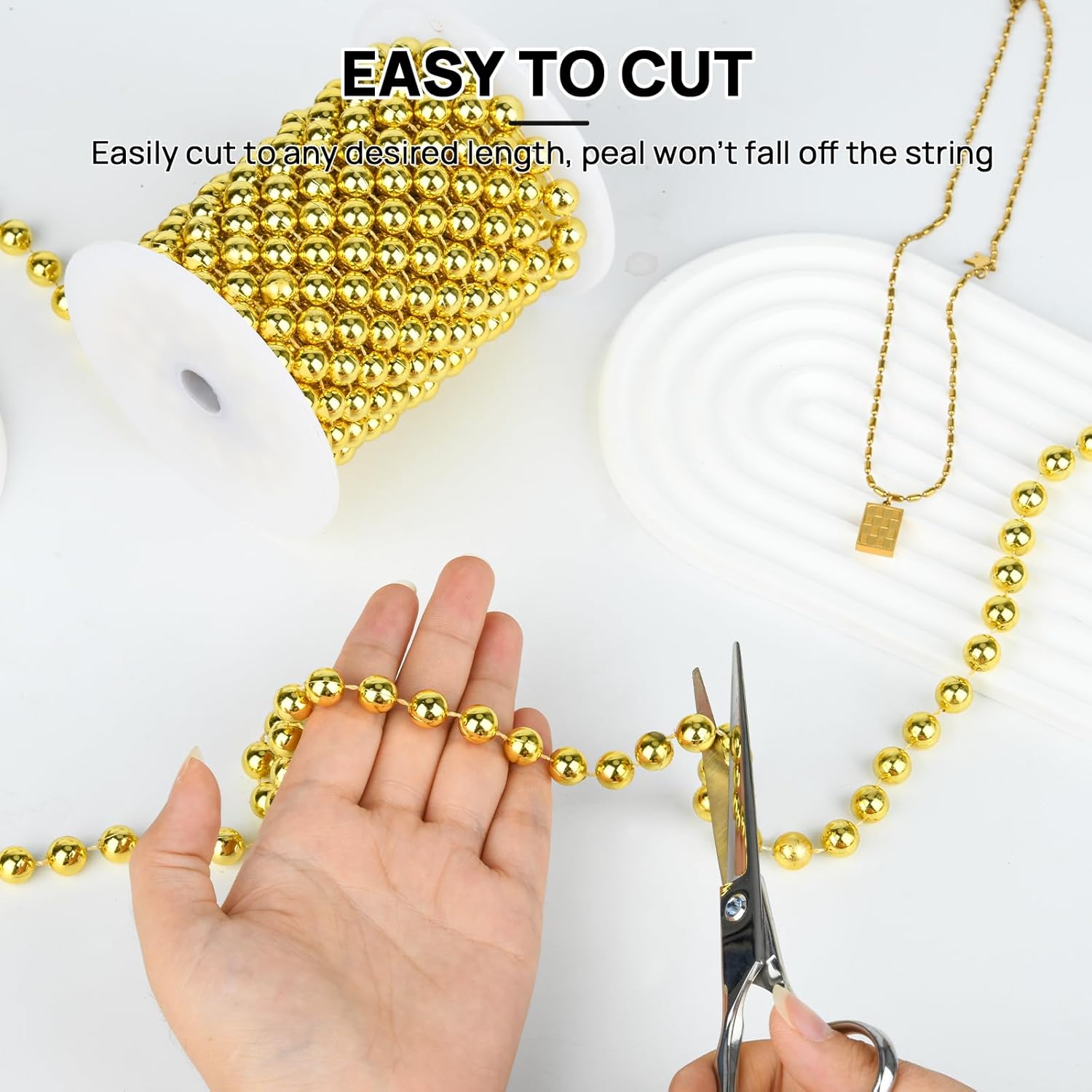 - Customizable Elegance - You can easily trim the pearl garland for decorating to any desired length, and the faux gold beads are tightly attached to the string and won't come off easily, ensuring a solid and long-lasting decorative effect