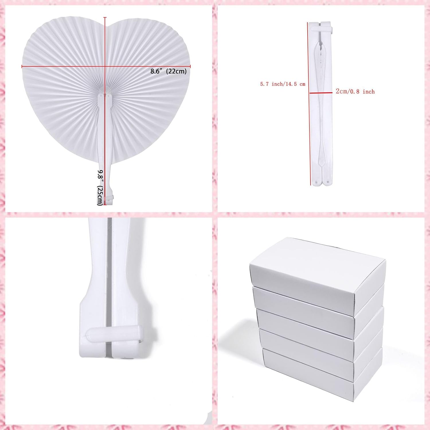 - THE PAPER FANS PACKAGE:Our paper foldable fans package will includes 12 pieces counts of heart accordion shaped folding white paper fans.In total 12 PCS.Package weight 0.45 lb.