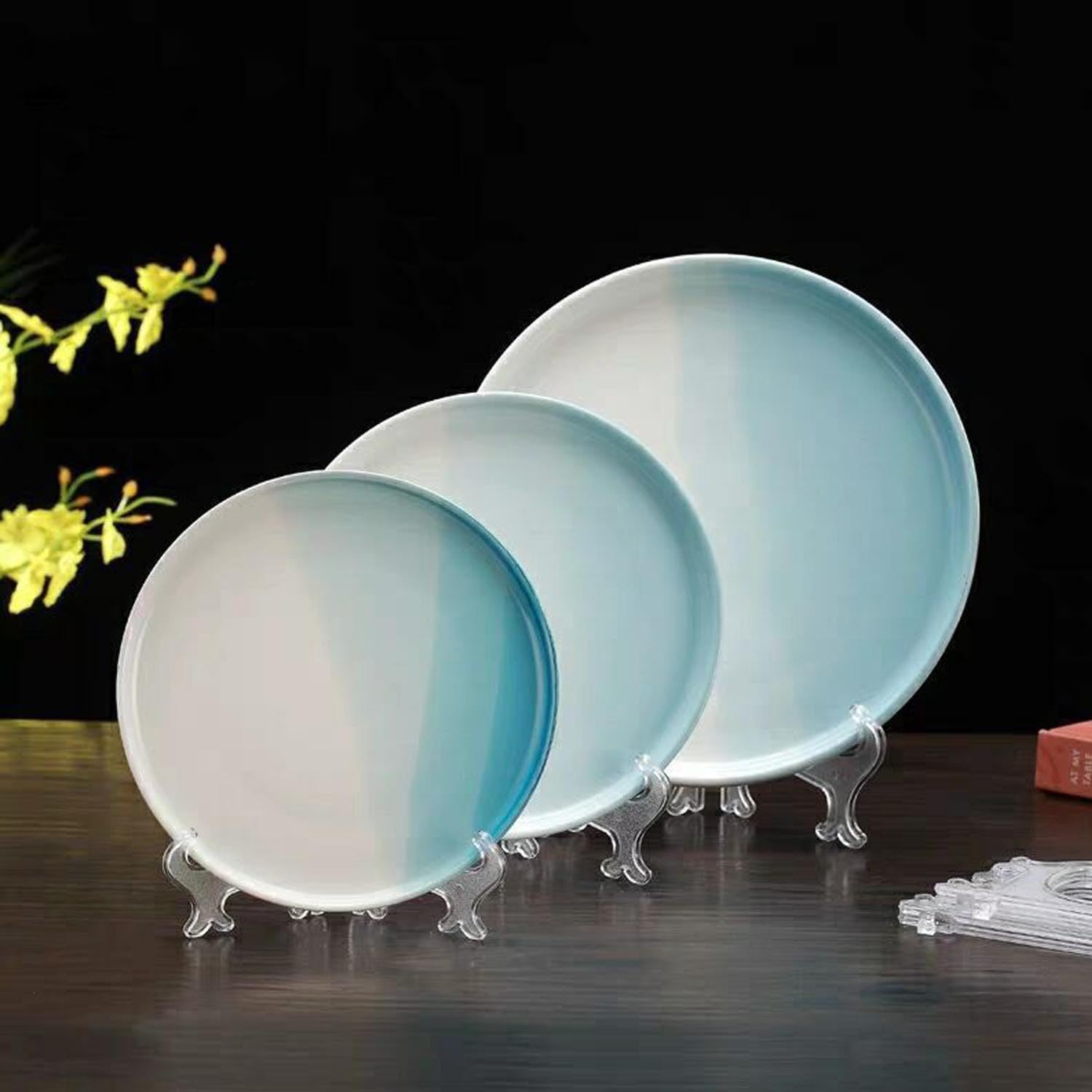 12 Pack 6 Inch Clear Plastic Easels or Stand/Plate Holders to Display Pictures or Other Items at Weddings, Plate Stands for Home Decoration, Birthdays, Tables