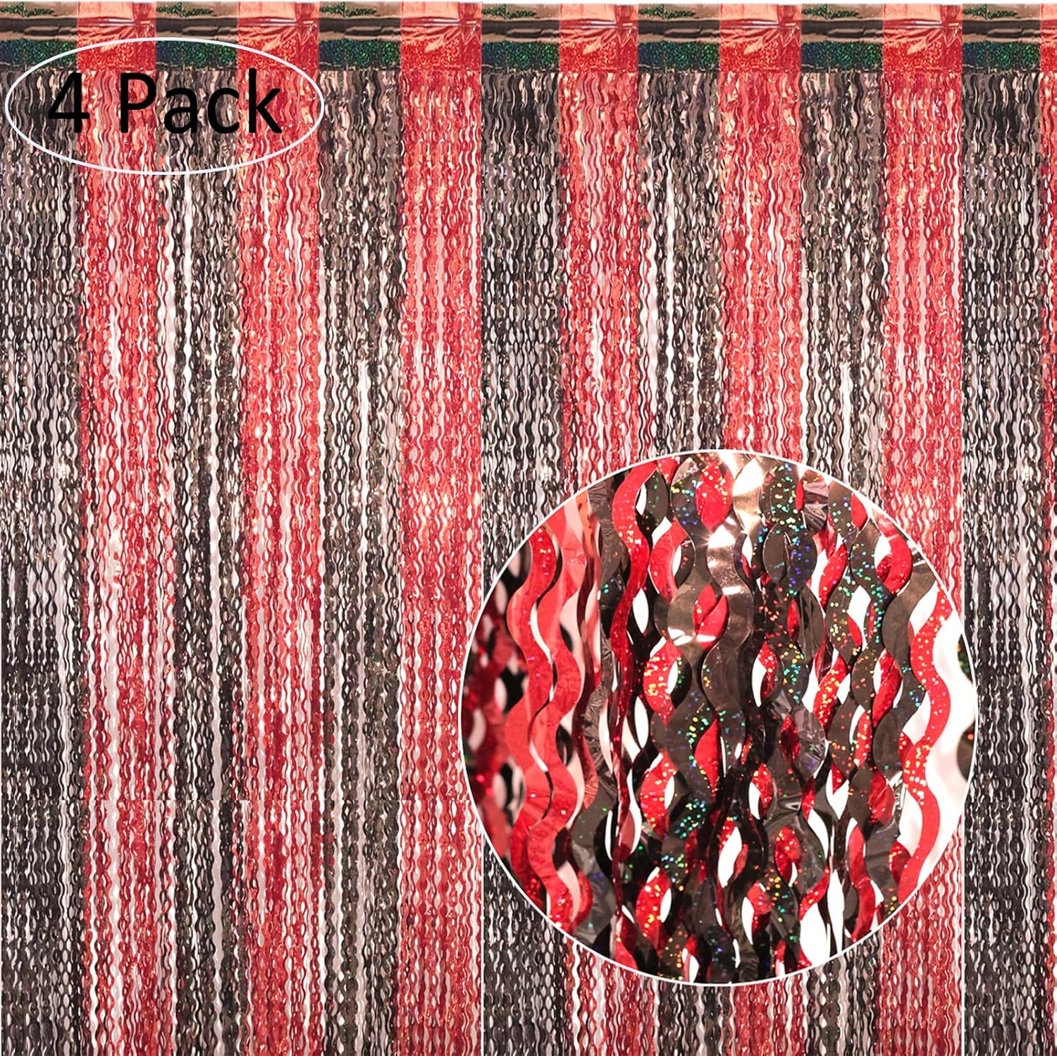 - Packing Included : 4 packs black red tinsel foil fringe curtains party photo backdrop, Each pack curtains size is 3.3ft x 6.6ft, enough length for decorate your party