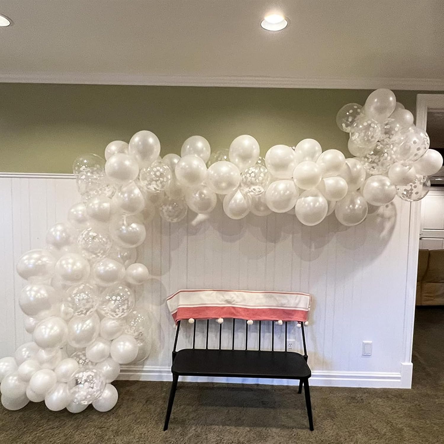 - White Mixed Ballons Set: 30Pcs 12 Inch latex party decoration balloons, include 10pcs pearl white balloons, 10pcs matte white balloons, 10pcs silver confetti balloons and 1pc white ribbon.