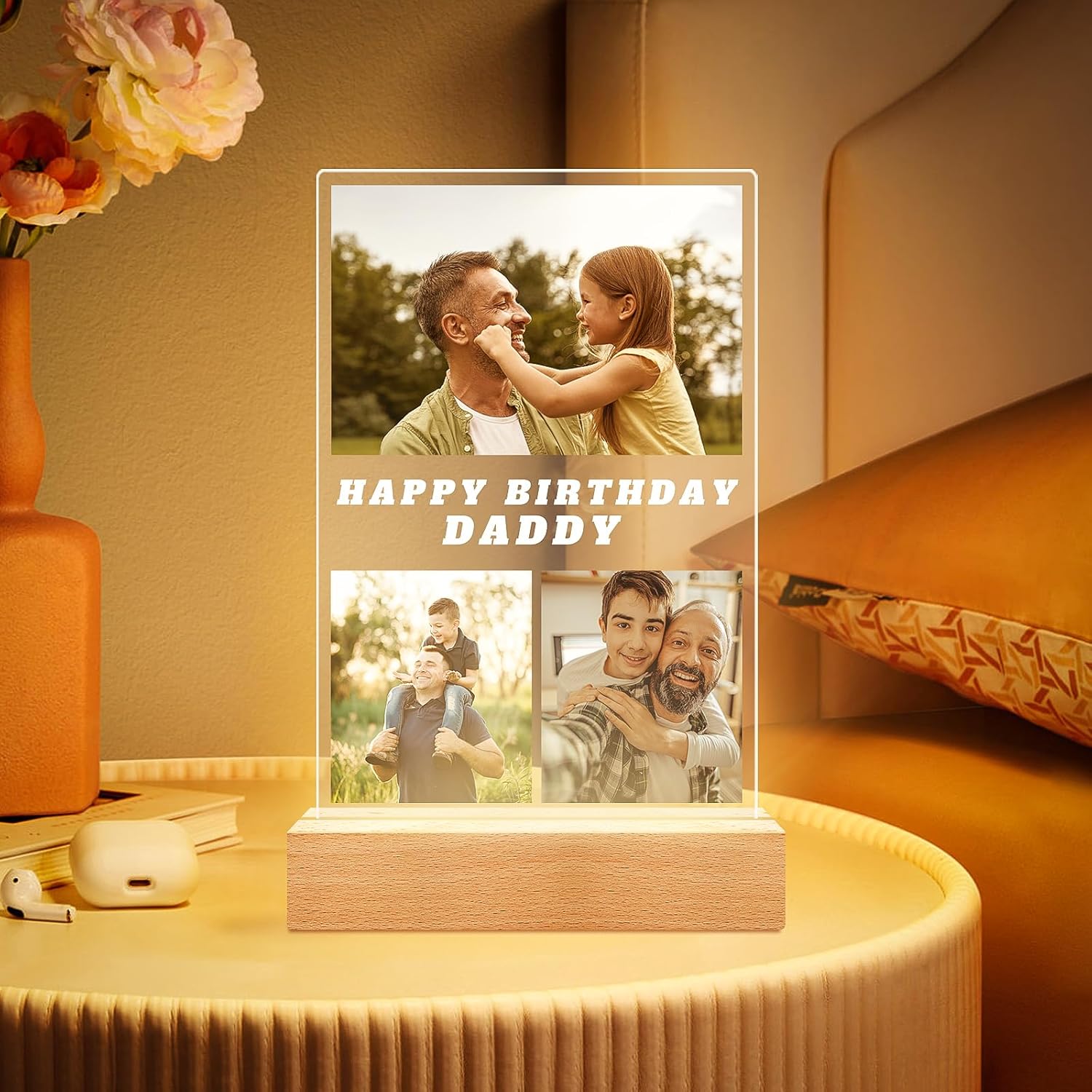 Personalized Birthday Gifts for Dad, Customized Picture Frames with Photo, Custom Photo Frame with Night Light, Personalized Picture Gifts for Dad
