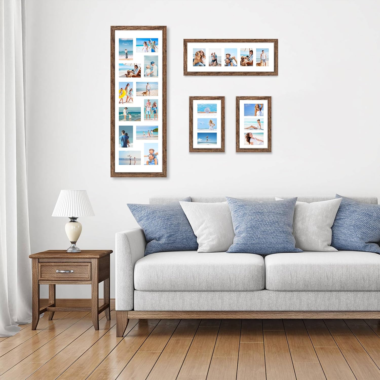 8x24 Picture Frame 2 Pack, Rustic Brown Wood Frame with Tempered Glass, Display Pictures Multiple Five 4x6 With Mat or 8 x 24 Without Mat - Horizontal or Vertical Wall Mounting
