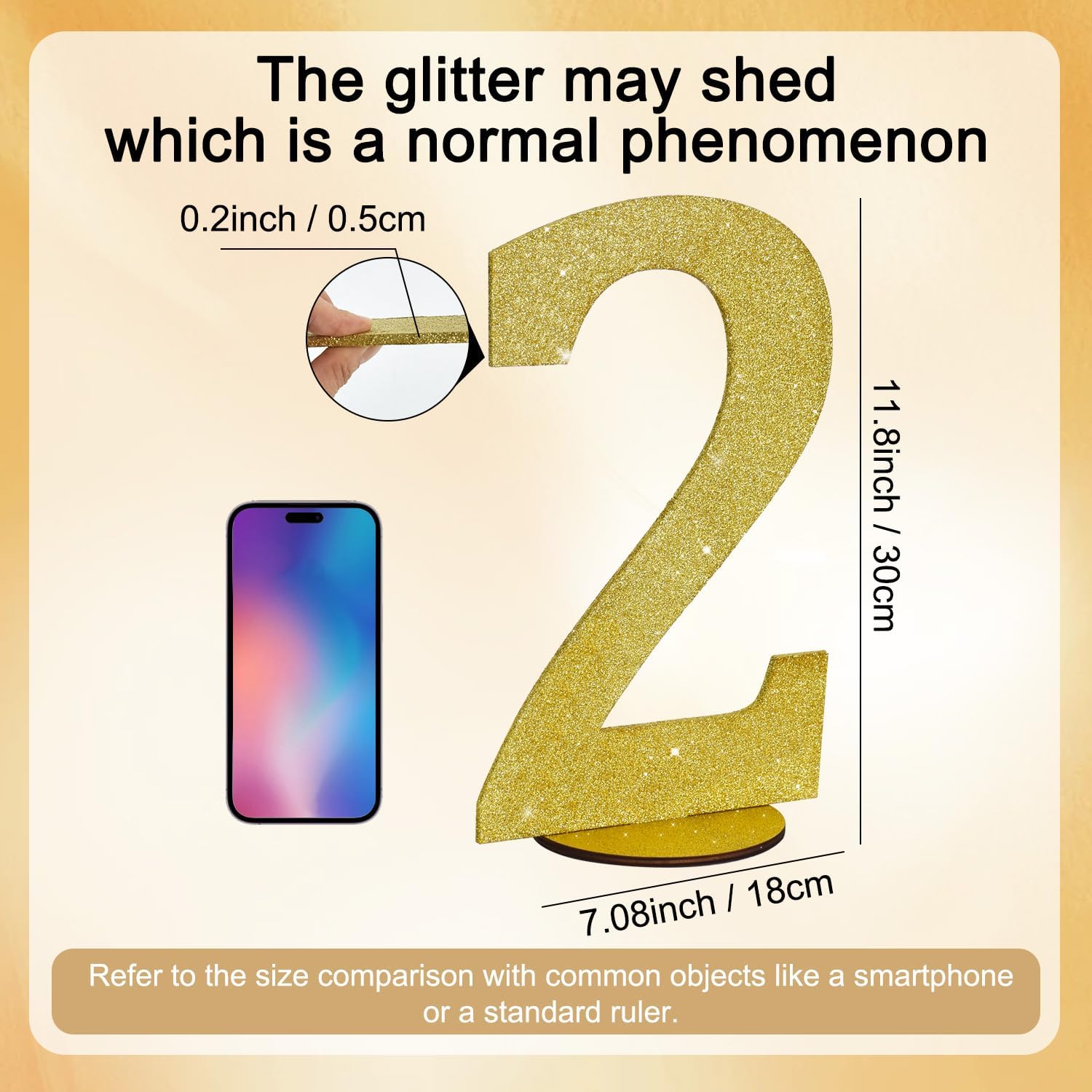 TONIFUL 11.8 Inch Gold Glitter Numbers Table Centerpieces 0-9 Birthday Party Decorations,Shining Gold Digital 2 for Birthday Party,Wedding,Bridal Shower,Engagement,Photo Shoot,Anniversary