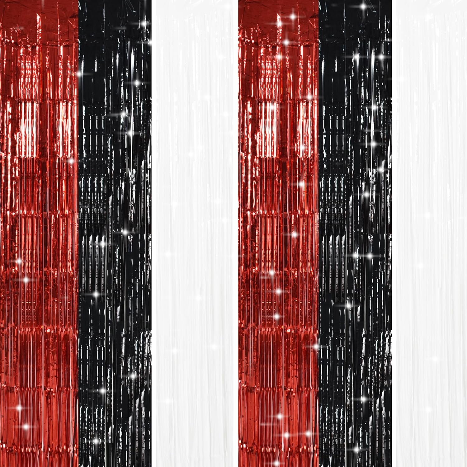 TONIFUL Black Red White Door Streamers,Black Red and White Photo Booth Backdrop Metallic Streamers Foil Fringe Curtain for Birthday,New Year,Graduation,Grad,Baby Shower Party Streamers Decoration