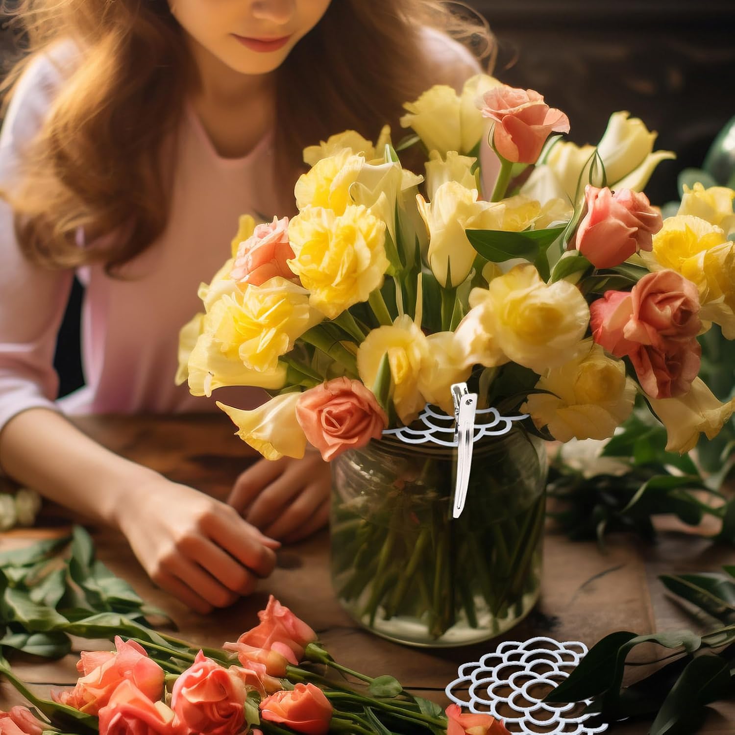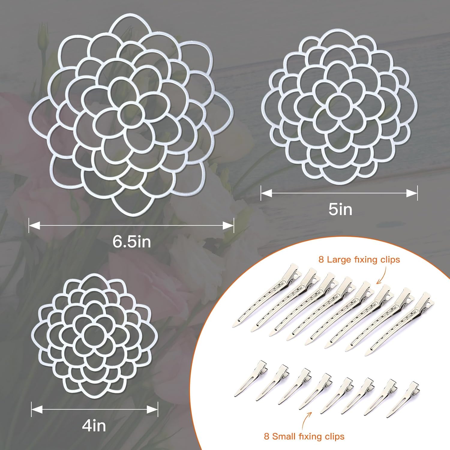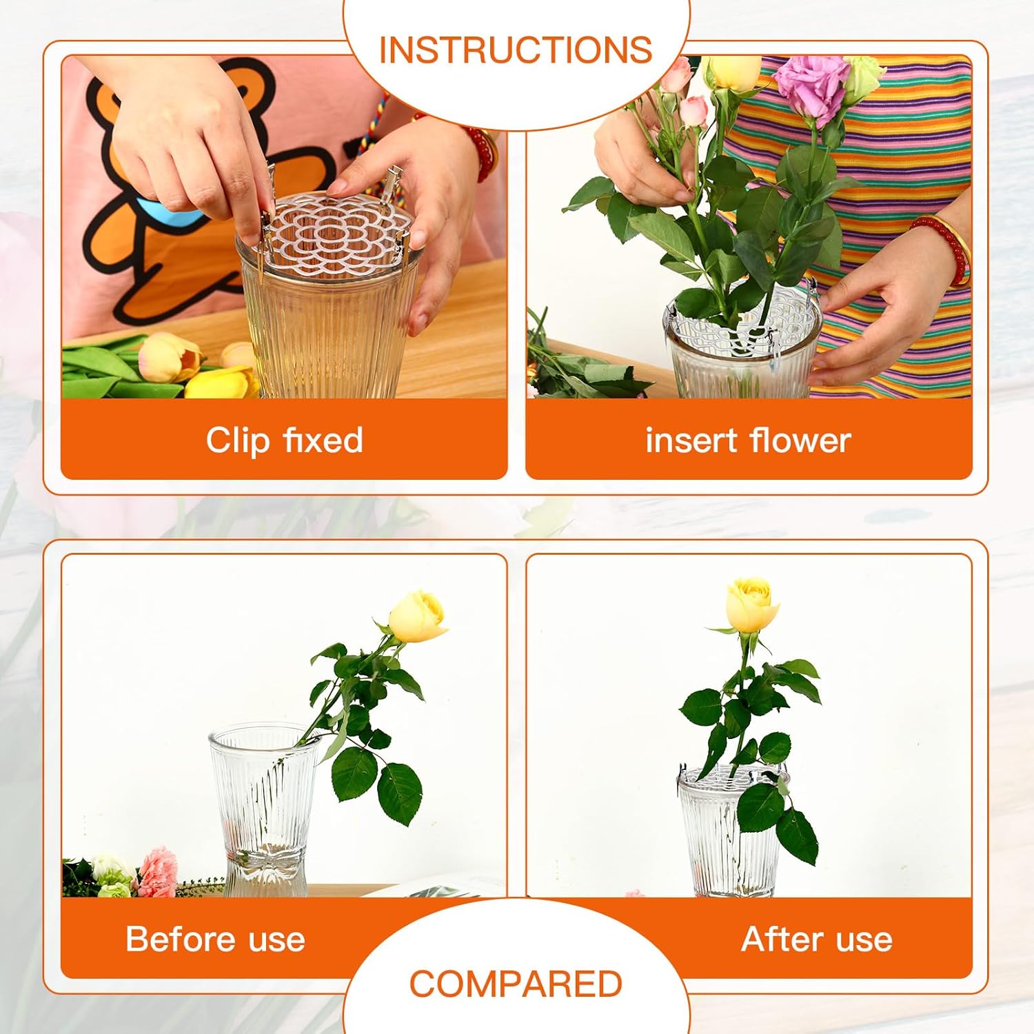 - Easy to Use: To help you arrange the flowers in a more orderly manner, we have equipped this 3 flower frogs lid with 8 medium and 8 small fixing clips. Using 2 to 4 fixing clips can prevent the flower frog lid from twisting and moving, giving you a more secure and comfortable use experience.