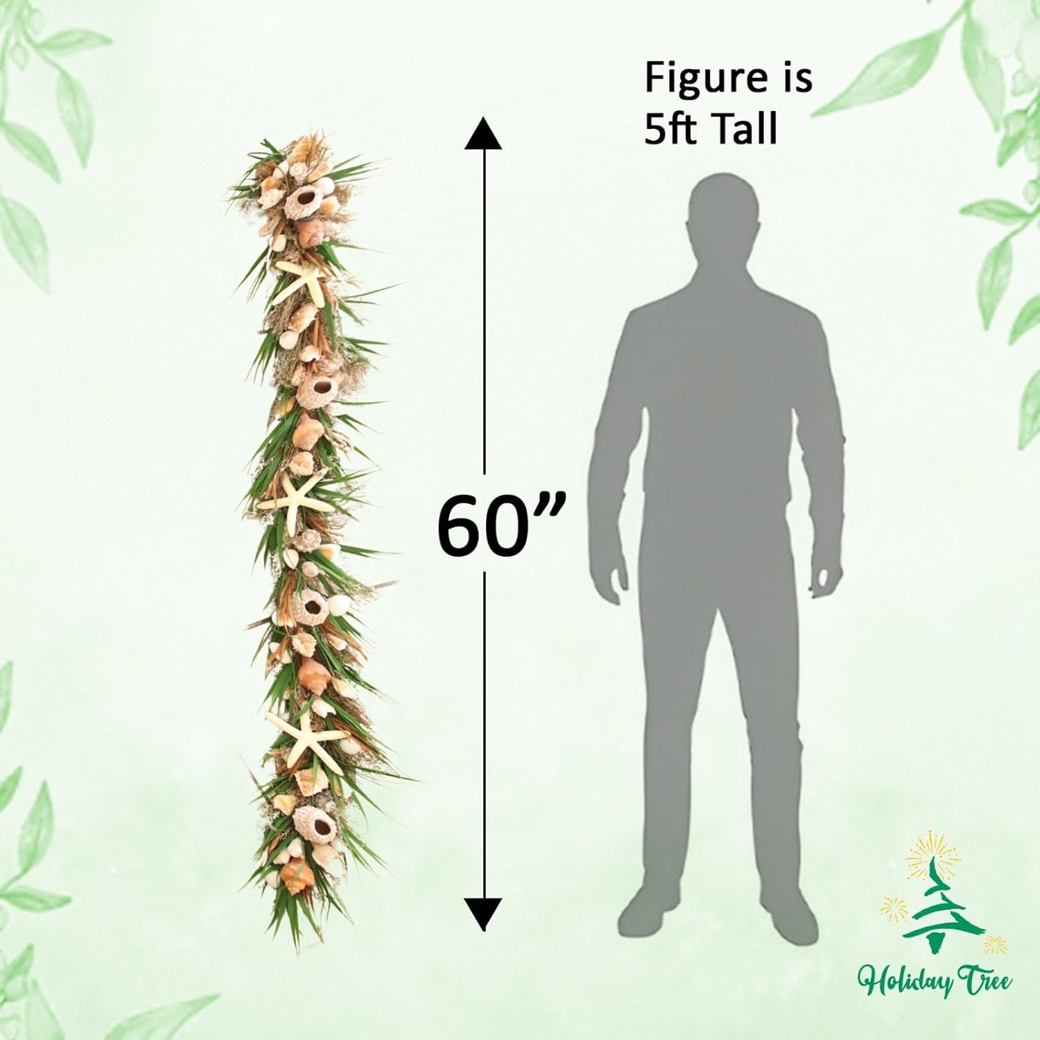 - STUNNING COASTAL CHARM – Elevate your décor with the HOLIDAY TREE 5' Shell Arrangement Garland, an exquisite green garland featuring natural shells, resin starfish, and sea urchins. Perfect for transforming your home into a coastal retreat, offering both elegance and a touch of the ocean.