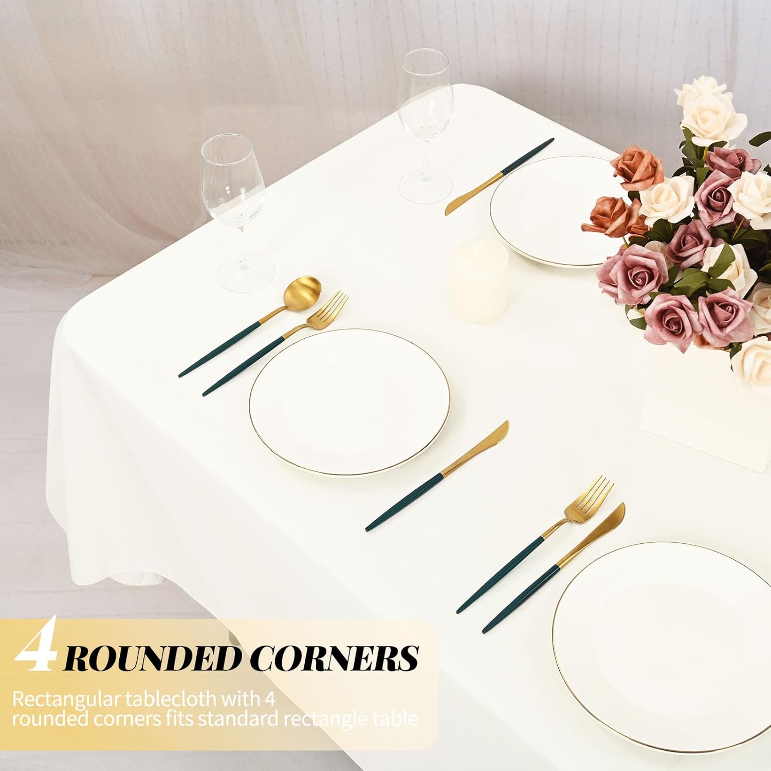 12 Pack Polyester Tablecloth 60 x 102 Inch Ivory Tablecloth for 6 Ft Rectangle Tables,Stain and Wrinkle Resistant Washable Fabric Table Covers Polyester Table Clothes for Wedding Parties Banque