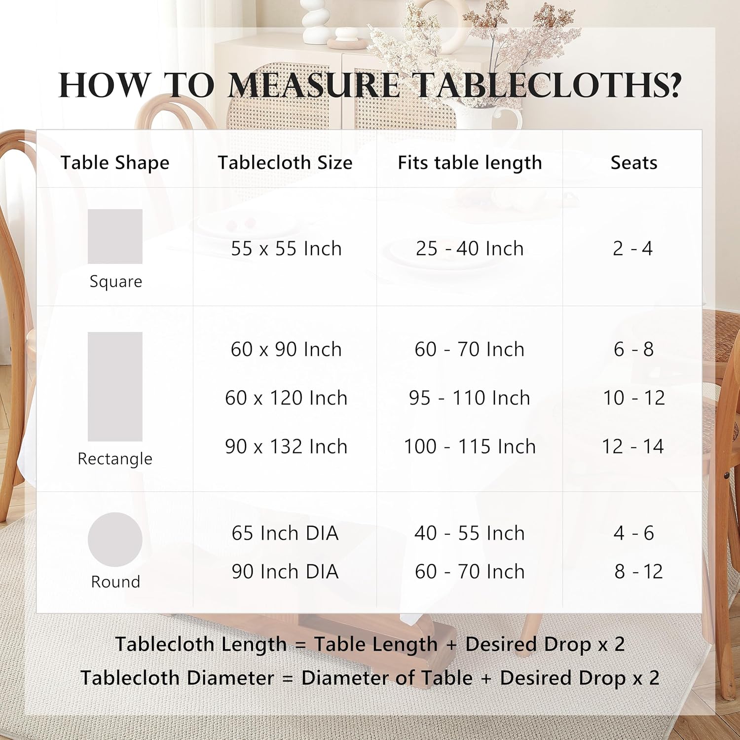 - Easy Care, Long Lasting Beauty: Effortlessly Stylish: Our tablecloths are designed for ease. Machine washable and getting softer with each wash, they offer the perfect blend of luxury and practicality. Minimal ironing required, they're an embodiment of laid-back elegance that improves with age.