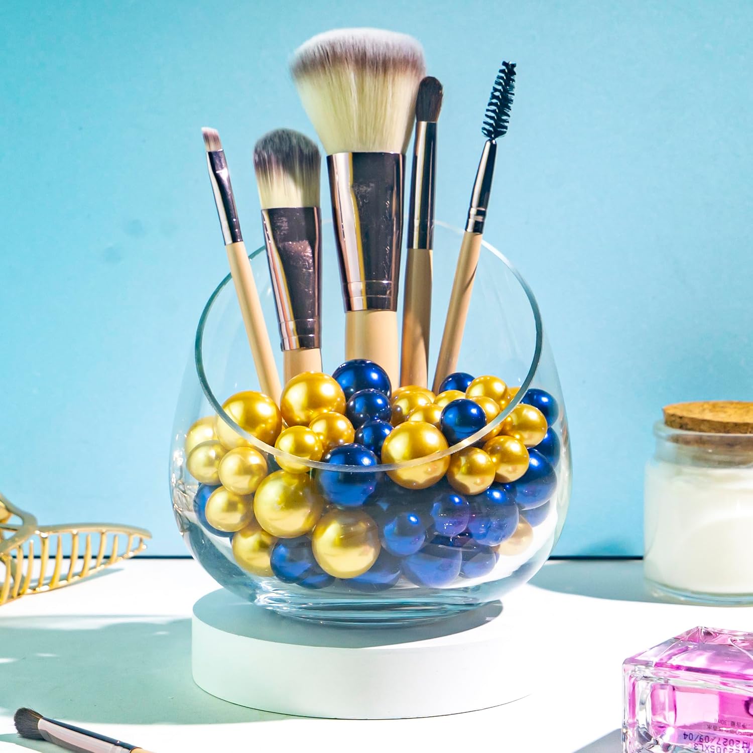 150Pcs Navy Blue&Gold Polished No Hole Faux Pearl Beads for Vase Filling Decorations, Plastic Pearls Vase Fillers, Table Scatters, Wedding Centerpiece, Home Decor, 8/14/20 mm