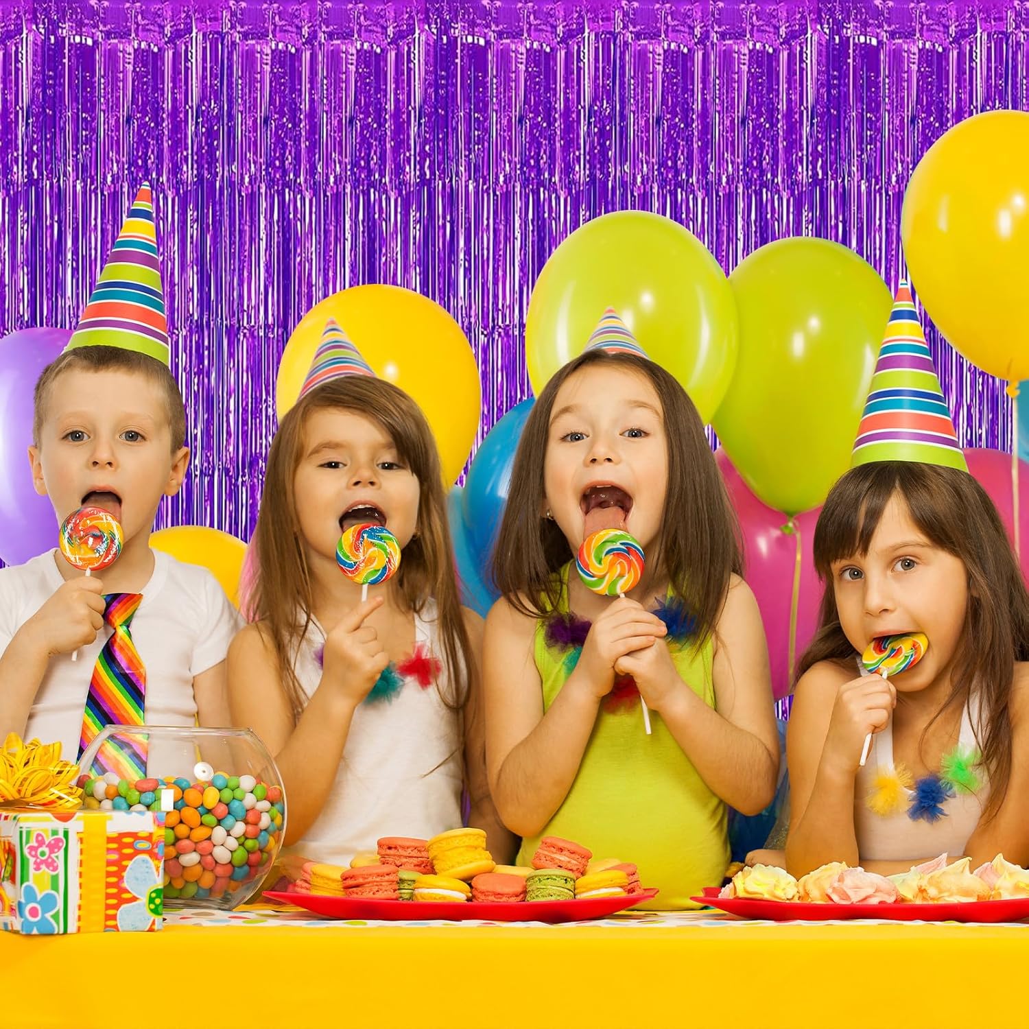 - 【Ideal Party Decoration】Show off your creativity and make your party stand out by using these purple foil fringe curtains to decorate your party. You can hang them on a door or wall as a surprise entrance to the party, or pair them with LED lights, balloons, and banners to create a shiny party backdrop for different themes and occasions.